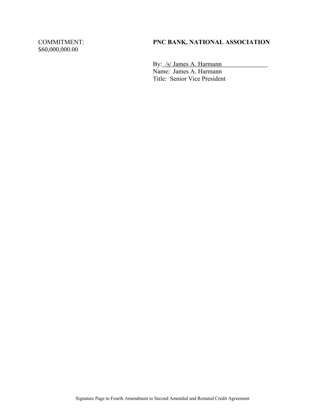 Signature Page to Fourth Amendment to Second Amended and Restated Credit Agreement COMMITMENT: PNC BANK, NATIONAL ASSOCIATION $60,000,000.00 By: /s/ James A. Harmann Name: James A. Harmann Title: Senior Vice President