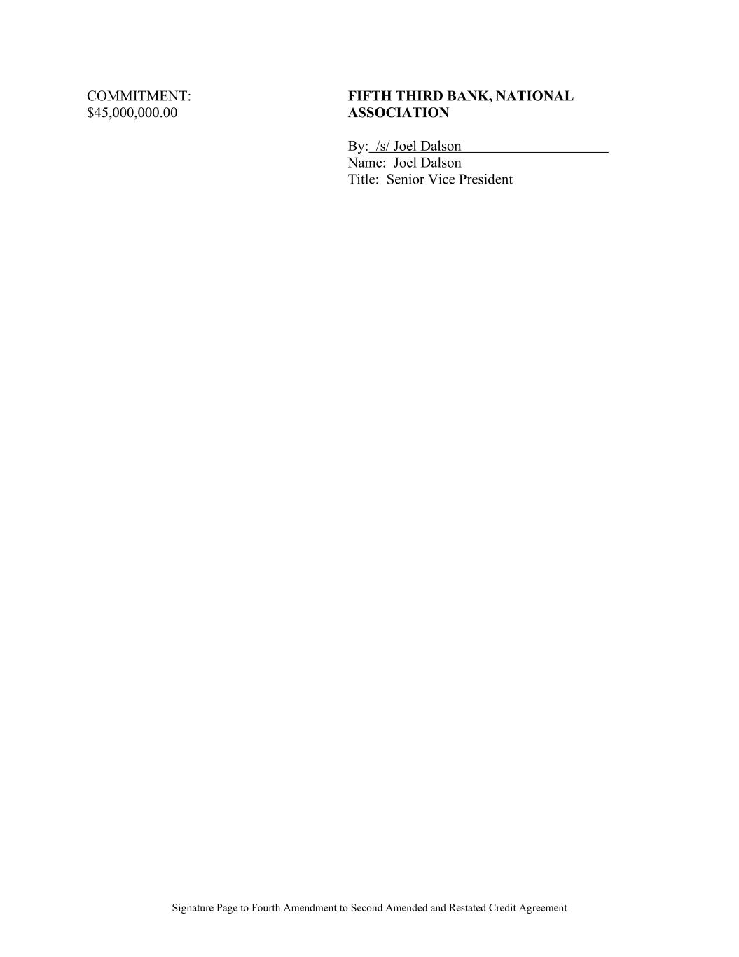 Signature Page to Fourth Amendment to Second Amended and Restated Credit Agreement COMMITMENT: FIFTH THIRD BANK, NATIONAL $45,000,000.00 ASSOCIATION By: /s/ Joel Dalson Name: Joel Dalson Title: Senior Vice President