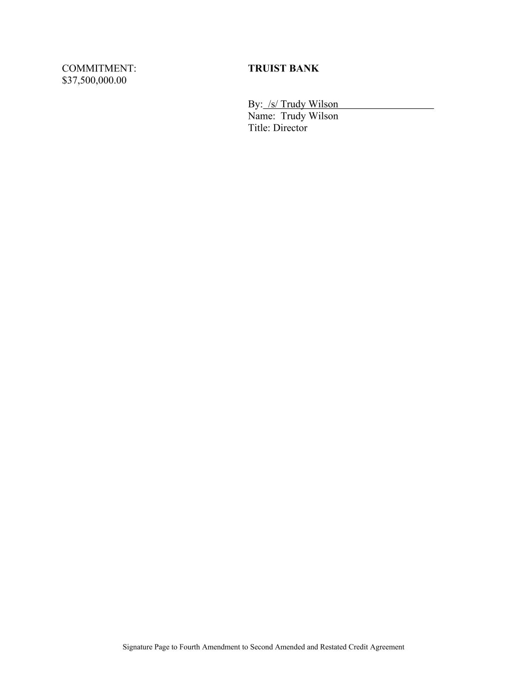 Signature Page to Fourth Amendment to Second Amended and Restated Credit Agreement COMMITMENT: TRUIST BANK $37,500,000.00 By: /s/ Trudy Wilson Name: Trudy Wilson Title: Director