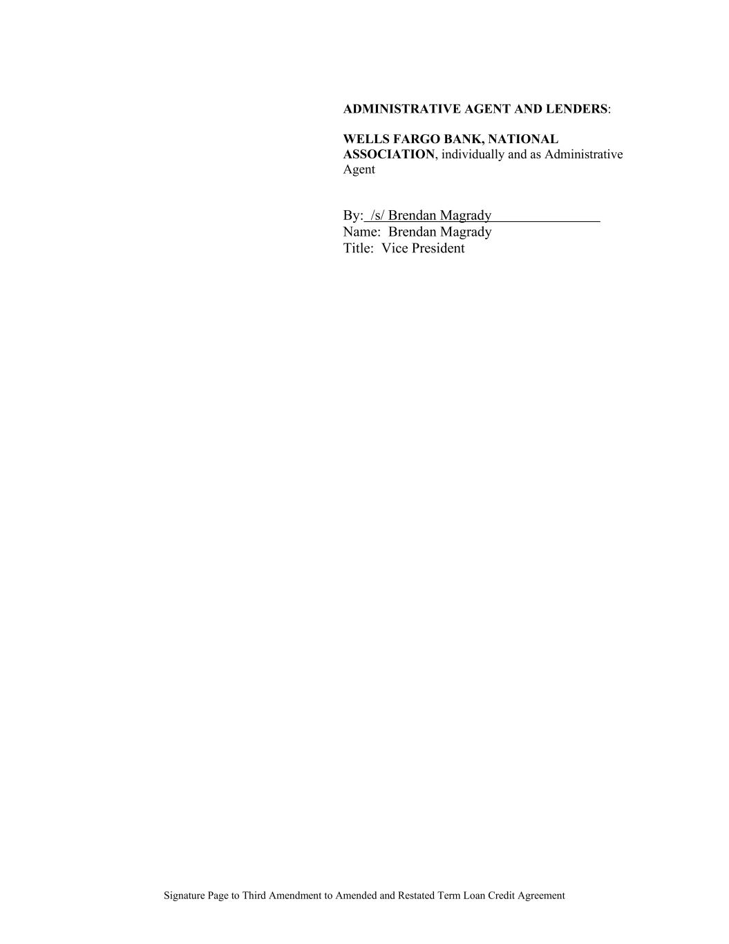 Signature Page to Third Amendment to Amended and Restated Term Loan Credit Agreement ADMINISTRATIVE AGENT AND LENDERS: WELLS FARGO BANK, NATIONAL ASSOCIATION, individually and as Administrative Agent By: /s/ Brendan Magrady Name: Brendan Magrady Title: Vice President