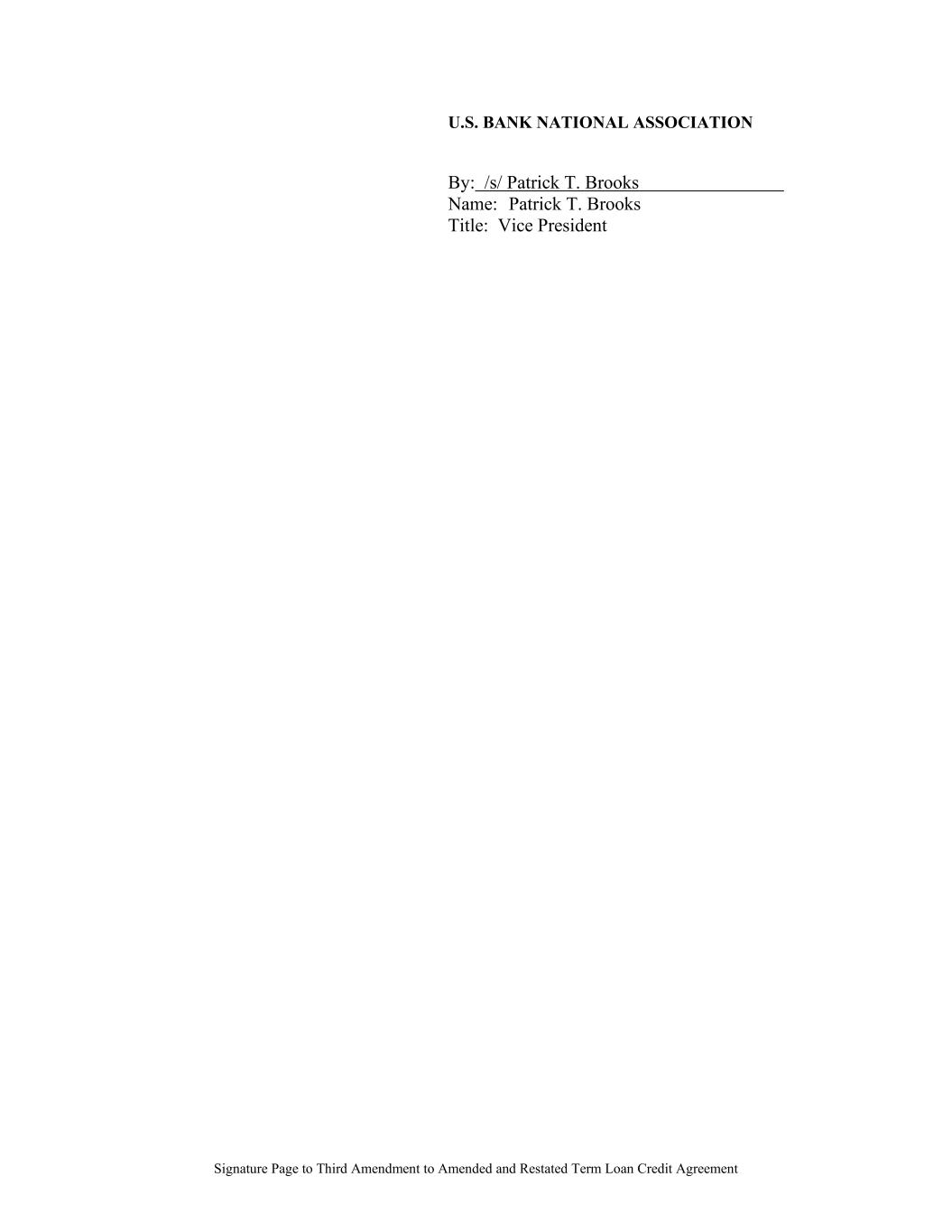 Signature Page to Third Amendment to Amended and Restated Term Loan Credit Agreement U.S. BANK NATIONAL ASSOCIATION By: /s/ Patrick T. Brooks Name: Patrick T. Brooks Title: Vice President
