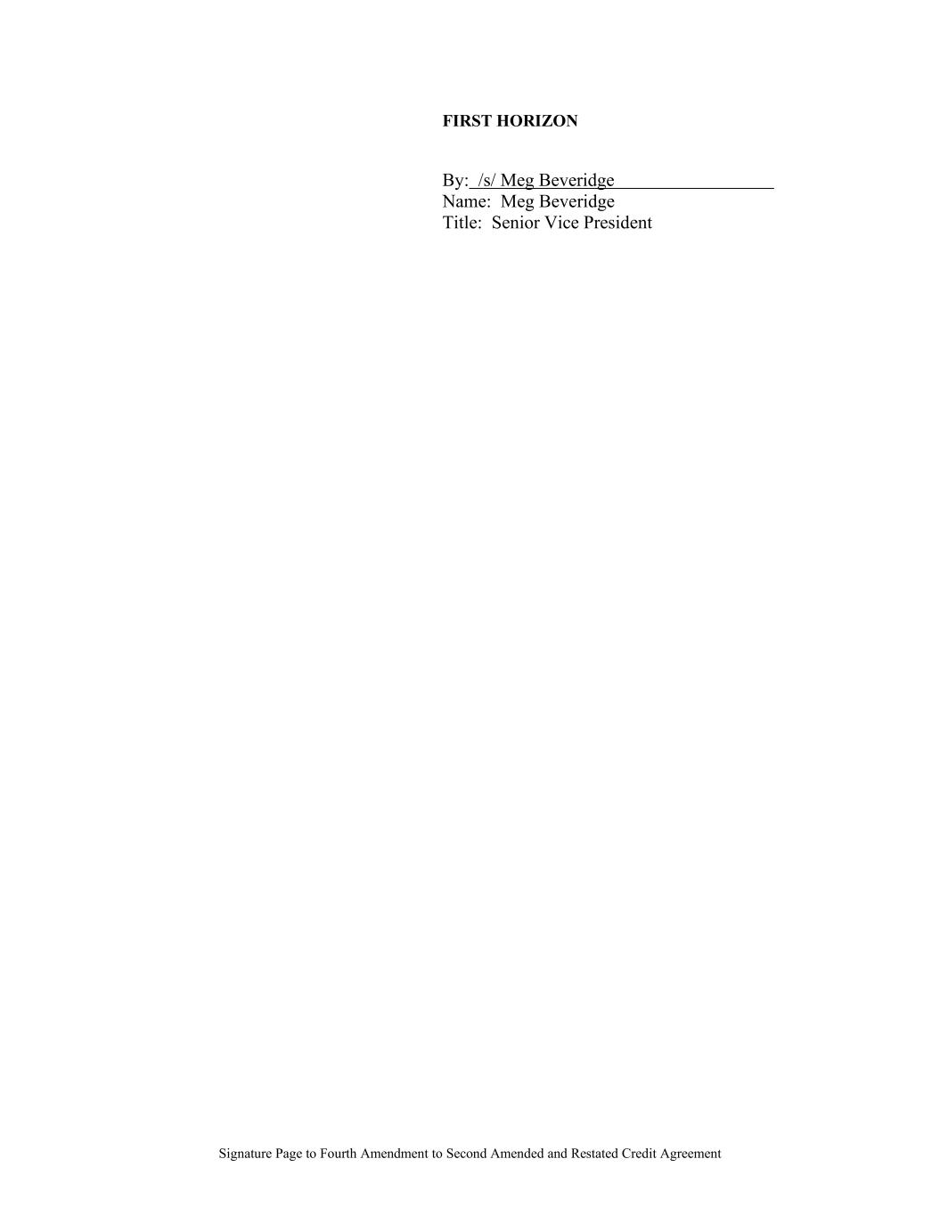 Signature Page to Fourth Amendment to Second Amended and Restated Credit Agreement FIRST HORIZON By: /s/ Meg Beveridge Name: Meg Beveridge Title: Senior Vice President