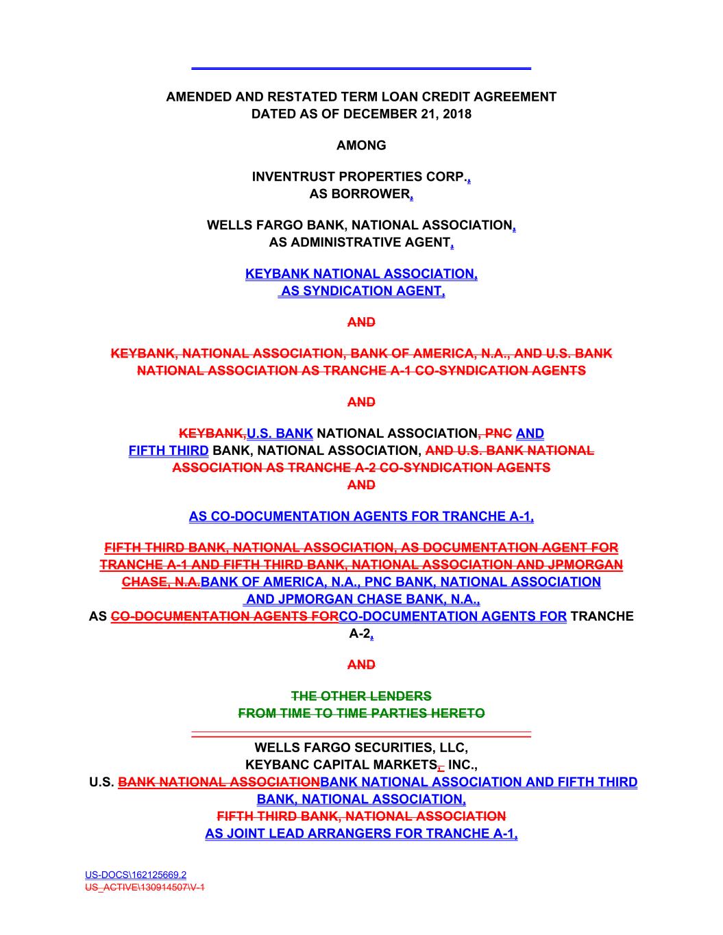 US-DOCS\162125669.2 US_ACTIVE\130914507\V-1 _______________________________________________ AMENDED AND RESTATED TERM LOAN CREDIT AGREEMENT DATED AS OF DECEMBER 21, 2018 AMONG INVENTRUST PROPERTIES CORP., AS BORROWER, WELLS FARGO BANK, NATIONAL ASSOCIATION, AS ADMINISTRATIVE AGENT, KEYBANK NATIONAL ASSOCIATION, AS SYNDICATION AGENT, AND KEYBANK, NATIONAL ASSOCIATION, BANK OF AMERICA, N.A., AND U.S. BANK NATIONAL ASSOCIATION AS TRANCHE A-1 CO-SYNDICATION AGENTS AND KEYBANK,U.S. BANK NATIONAL ASSOCIATION, PNC AND FIFTH THIRD BANK, NATIONAL ASSOCIATION, AND U.S. BANK NATIONAL ASSOCIATION AS TRANCHE A-2 CO-SYNDICATION AGENTS AND AS CO-DOCUMENTATION AGENTS FOR TRANCHE A-1, FIFTH THIRD BANK, NATIONAL ASSOCIATION, AS DOCUMENTATION AGENT FOR TRANCHE A-1 AND FIFTH THIRD BANK, NATIONAL ASSOCIATION AND JPMORGAN CHASE, N.A.BANK OF AMERICA, N.A., PNC BANK, NATIONAL ASSOCIATION AND JPMORGAN CHASE BANK, N.A., AS CO-DOCUMENTATION AGENTS FORCO-DOCUMENTATION AGENTS FOR TRANCHE A-2, AND THE OTHER LENDERS FROM TIME TO TIME PARTIES HERETO _______________________________________________ WELLS FARGO SECURITIES, LLC, KEYBANC CAPITAL MARKETS, INC., U.S. BANK NATIONAL ASSOCIATIONBANK NATIONAL ASSOCIATION AND FIFTH THIRD BANK, NATIONAL ASSOCIATION, FIFTH THIRD BANK, NATIONAL ASSOCIATION AS JOINT LEAD ARRANGERS FOR TRANCHE A-1,