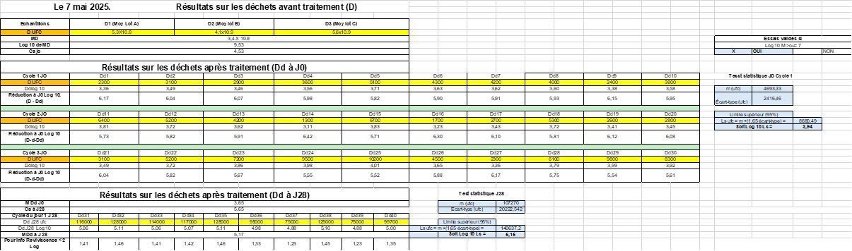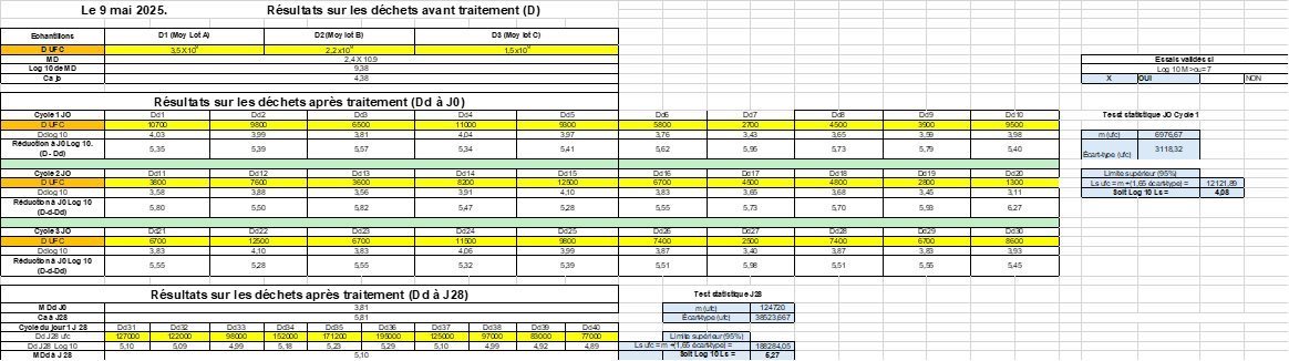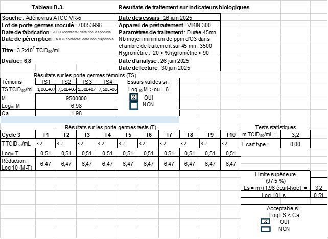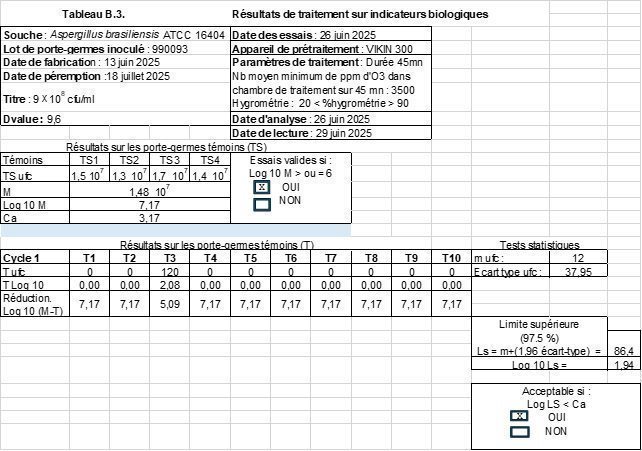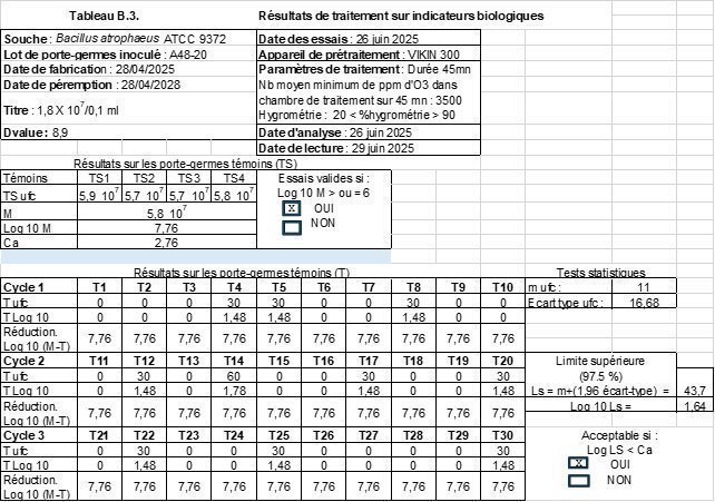 Essais de traitement sur indicateurs biologiques (NFX 30503-1 Annexe A2)