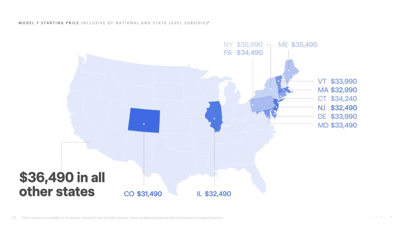 M O D E L Y S T A R T I N G P R I C E I N C L U S I V E O F N A T I O N A L A N D S T A T E L E V E L S U B S I D I E S* 12 *Not all consumers are eligible for all subsidies. Exclusive of local and utility subsidies. Please see additional details at https://www.tesla.com/support/incentives.