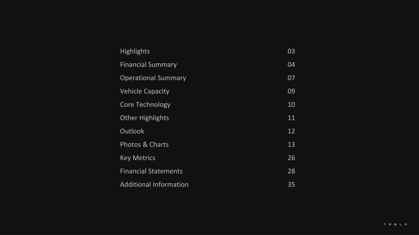 Highlights 03 Financial Summary 04 Operational Summary 07 Vehicle Capacity 09 Core Technology 10 Other Highlights 11 Outlook 12 Photos & Charts 13 Key Metrics 26 Financial Statements 28 Additional Information 35 2