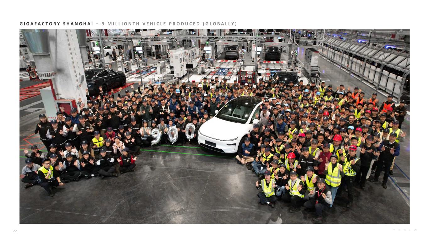 G I G A F A C T O R Y S H A N G H A I – 9 M I L L I O N T H V E H I C L E P R O D U C E D ( G L O B A L L Y ) 22