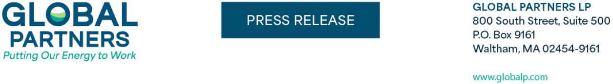 Waltham, Mass., October 28, 2025 – Global Partners LP (NYSE: GLP) (“Global Partners” or the “Partnership”) today announced that the Board of Directors of its general partner, Global GP LLC, has declared a cash distribution of $0.7550 per unit ($3.02 per unit on an annualized basis) on all of its outstanding common units from July 1, 2025 through September 30, 2025. The distribution will be paid on November 14, 2025 to unitholders of record as of the close of business on November 10, 2025.