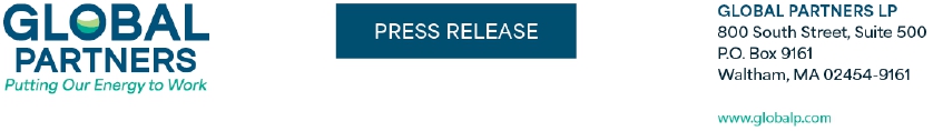 Waltham, Mass., January 12, 2026 – Global Partners LP (NYSE: GLP) (the “Partnership”) today announced that the Board of Directors (the “Board”) of its general partner, Global GP LLC, has declared a quarterly cash distribution of $0.59375 per unit ($2.375 per unit on an annualized basis) on the Partnership’s 9.50% fixed-rate Series B preferred units for the period from November 15, 2025 through February 14, 2026. The distribution will be paid on February 17, 2026 to Series B preferred unitholders of record as of the opening of business on February 2, 2026.