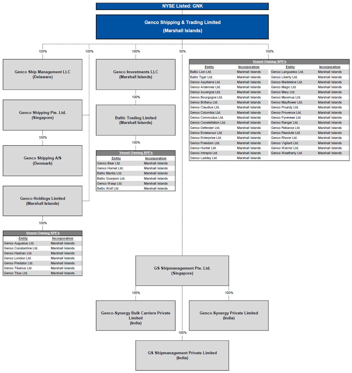 This compliance certificate (this “Certificate”) is delivered to you pursuant to Section 5.01(c) of the Credit Agreement, dated as of August 3, 2021 (as the same now exists or may hereafter be amended, amended and restated, modified, supplemented, extended, renewed, restated or otherwise modified from time to time, the “Credit Agreement”), among Genco Shipping & Trading Limited, a Marshall Islands corporation (the “Borrower”), the Subsidiary Guarantors from time to time party thereto, the Lenders from time to time party thereto, Nordea Bank Abp, New York Branch, as administrative agent (in such capacity, the “Administrative Agent”) for the Lenders, Nordea Bank Abp, New York Branch, as Collateral Agent and Security Trustee for the Secured Parties, and the other parties thereto.  Unless otherwise defined herein, terms defined in the Credit Agreement and used herein shall have the meanings given to them in the Credit Agreement.