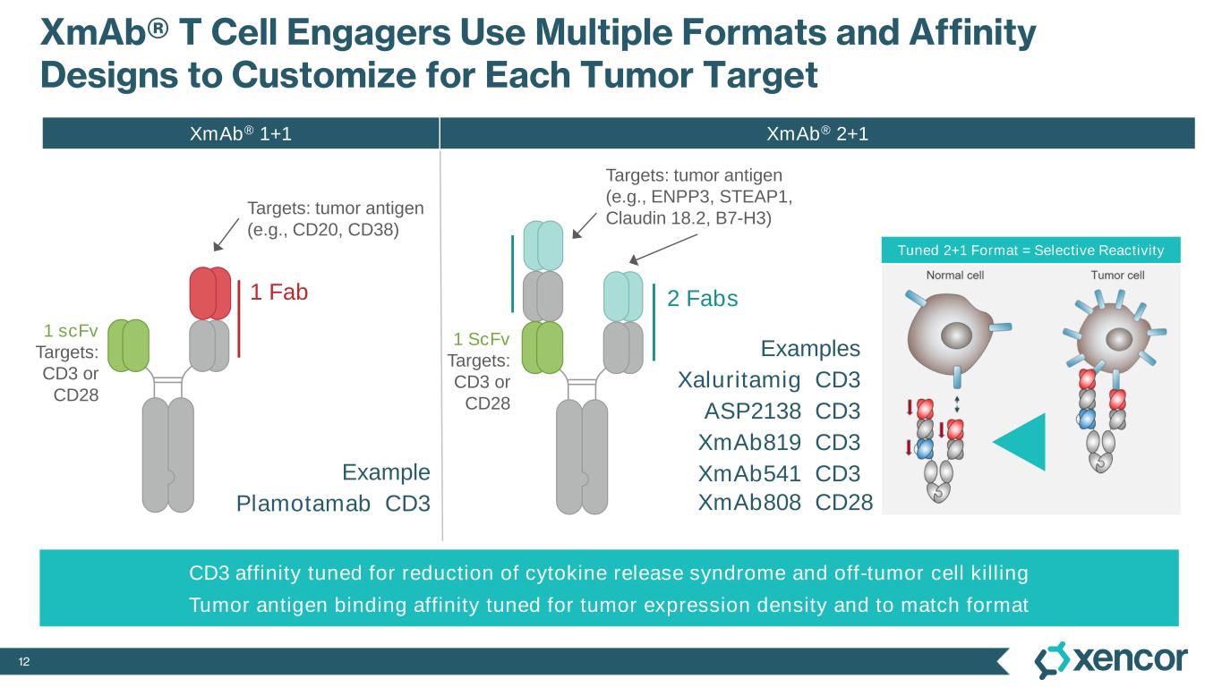 11 ® XmAb® Bispecific T Cell Engagers XmAb 2+1 Bispecific Antibody Format XmAb819 (ENPP3 x CD3) XmAb541 (CLDN6 x CD3) XmAb808 (B7-H3 x CD28)