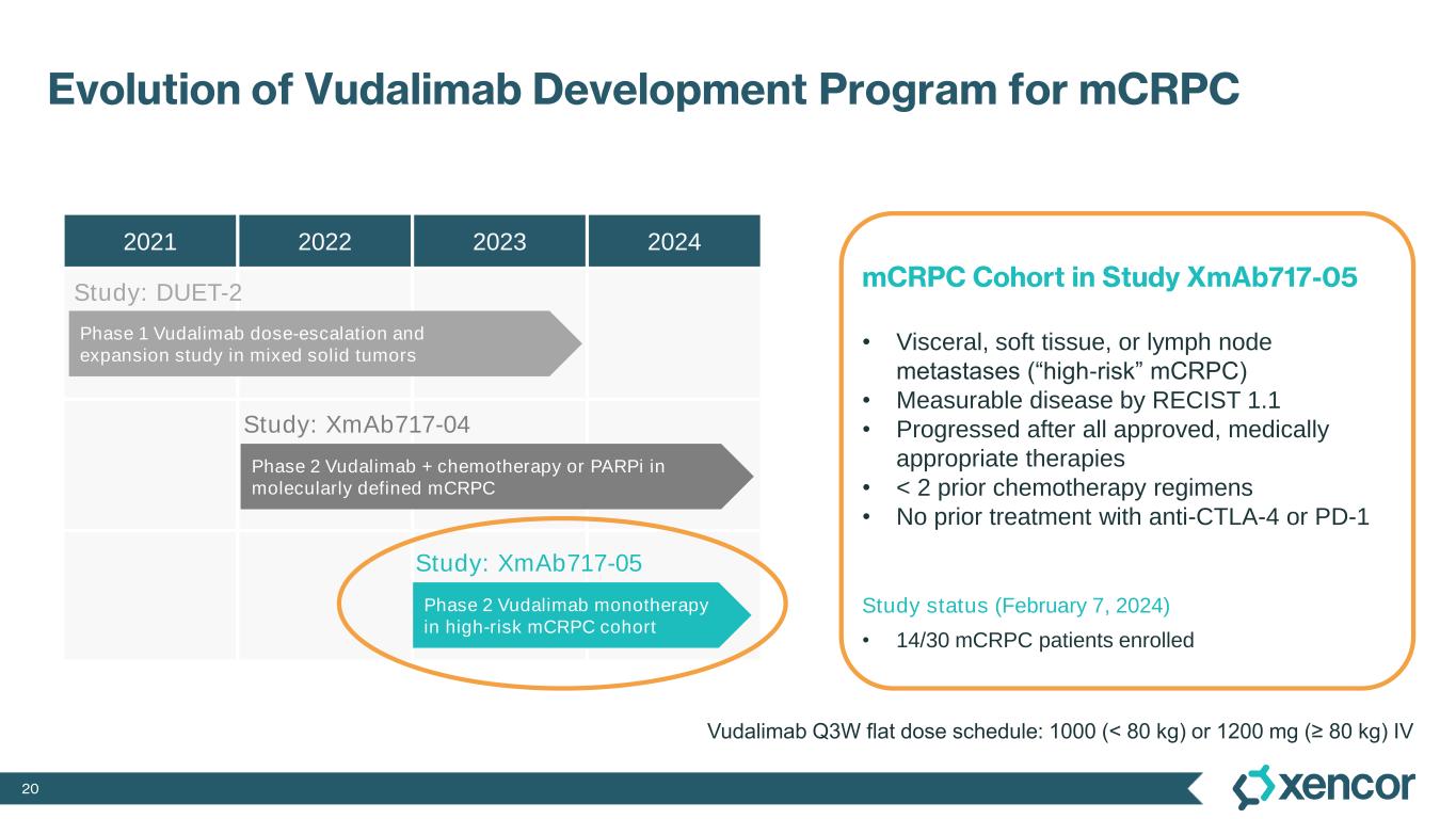 ®Vudalimab Monotherapy in Patients with mCRPC Study XmAb717-05 Data cut 7 February 2024
