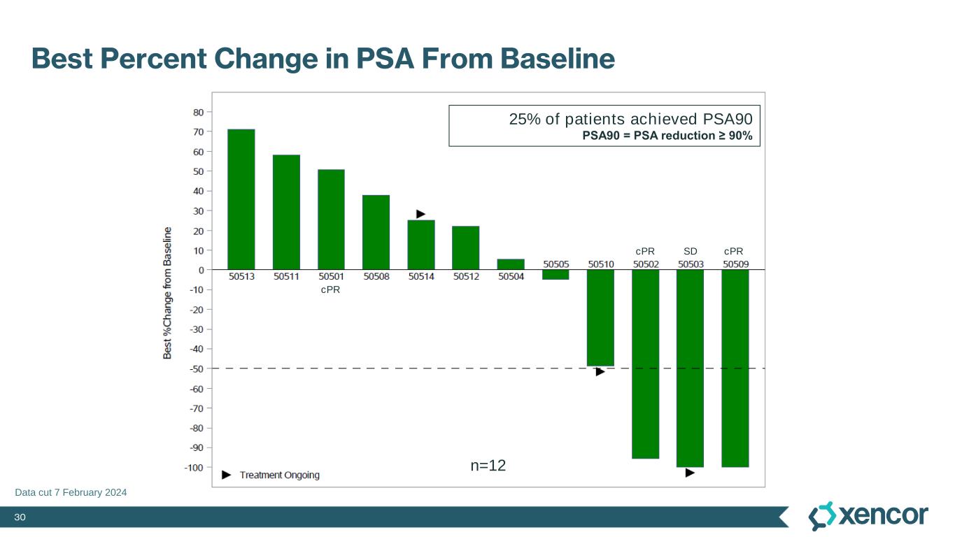 30 Best Percent Change in PSA From Baseline Data cut 7 February 2024 25% of patients achieved PSA90 PSA90 = PSA reduction ≥ 90% n=12 cPR cPR cPRSD