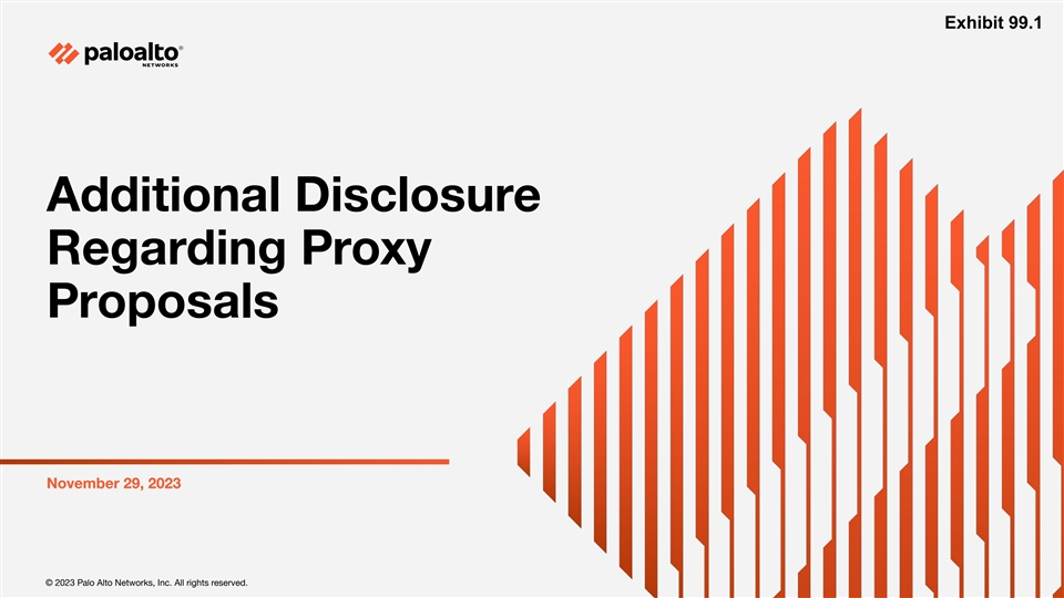 Exhibit 99.1 Additional Disclosure Regarding Proxy Proposals November 29, 2023 © 2023 P © 2023 Palo Alt alo Alto Networks, Inc. All rights r o Networks, Inc. All rights reser eserved. ved.