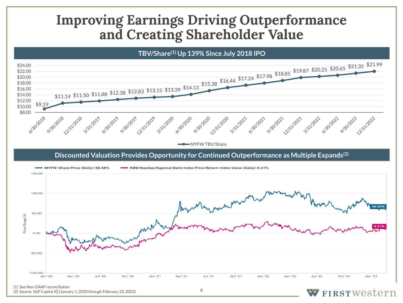 $9.19 $11.14 $11.50 $11.88 $12.38 $12.83 $13.15 $13.39 $14.13 $15.38 $16.44 $17.24 $17.98 $18.85 $19.87 $20.25 $20.65 $21.35 $21.99 $8.00 $10.00 $12.00 $14.00 $16.00 $18.00 $20.00 $22.00 $24.00 MYFW TBV/Share 6 Improving Earnings Driving Outperformance and Creating Shareholder Value Discounted Valuation Provides Opportunity for Continued Outperformance as Multiple Expands(2) (1) See Non-GAAP reconciliation (2) Source: S&P Capital IQ (January 1, 2020 through February 23, 2023) TBV/Share(1) Up 139% Since July 2018 IPO