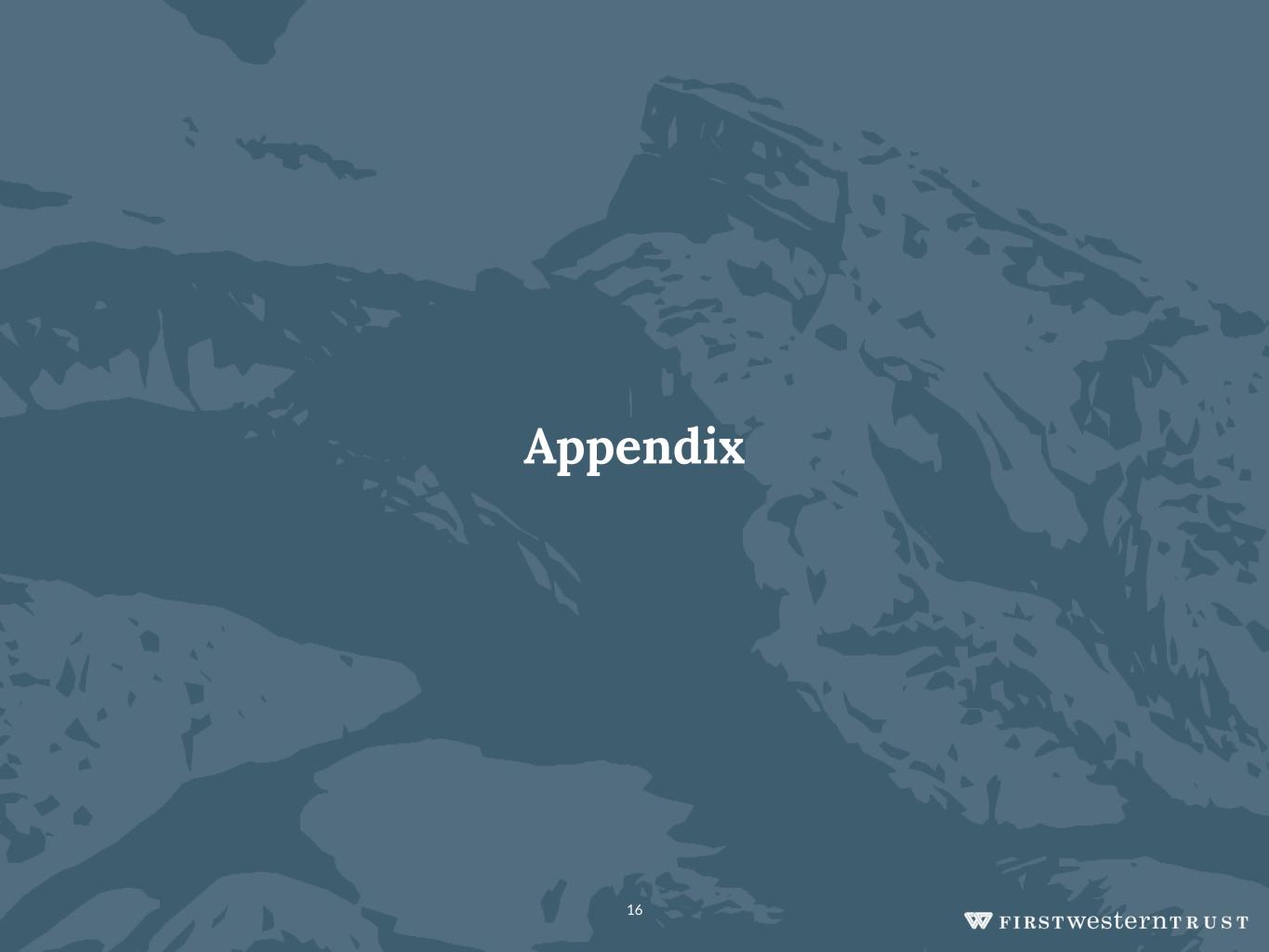 15 Near-Term Outlook •Prudent risk management will remain top priority while economic uncertainty remains, which will impact level of profitability in short term •We expect strength of balance sheet will enable First Western to capitalize on current turmoil in banking industry to add new clients and talent looking to move to a stronger financial institution •Reorganization of offices will enable senior leadership to devote more time to business development •Continued focus on disciplined expense control to realize more operating leverage •As during the pandemic, First Western is well positioned to be a source of strength and stability, capitalize on opportunities to add new clients, and generate continued long-term profitable growth that will create value for shareholders •Completed operating expense review in April that will reduce ongoing costs by 6.9% or $1.4 million per quarter vs. 1Q23 expenses