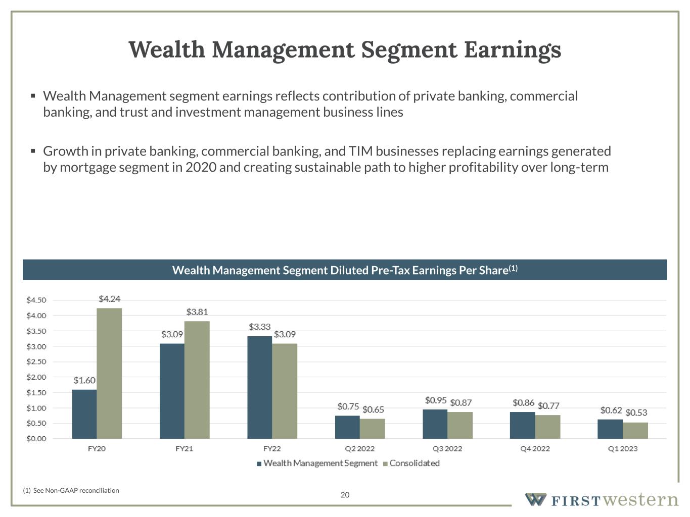 20 Wealth Management Segment Earnings (1) See Non-GAAP reconciliation ▪ Wealth Management segment earnings reflects contribution of private banking, commercial banking, and trust and investment management business lines ▪ Growth in private banking, commercial banking, and TIM businesses replacing earnings generated by mortgage segment in 2020 and creating sustainable path to higher profitability over long-term Wealth Management Segment Diluted Pre-Tax Earnings Per Share(1)