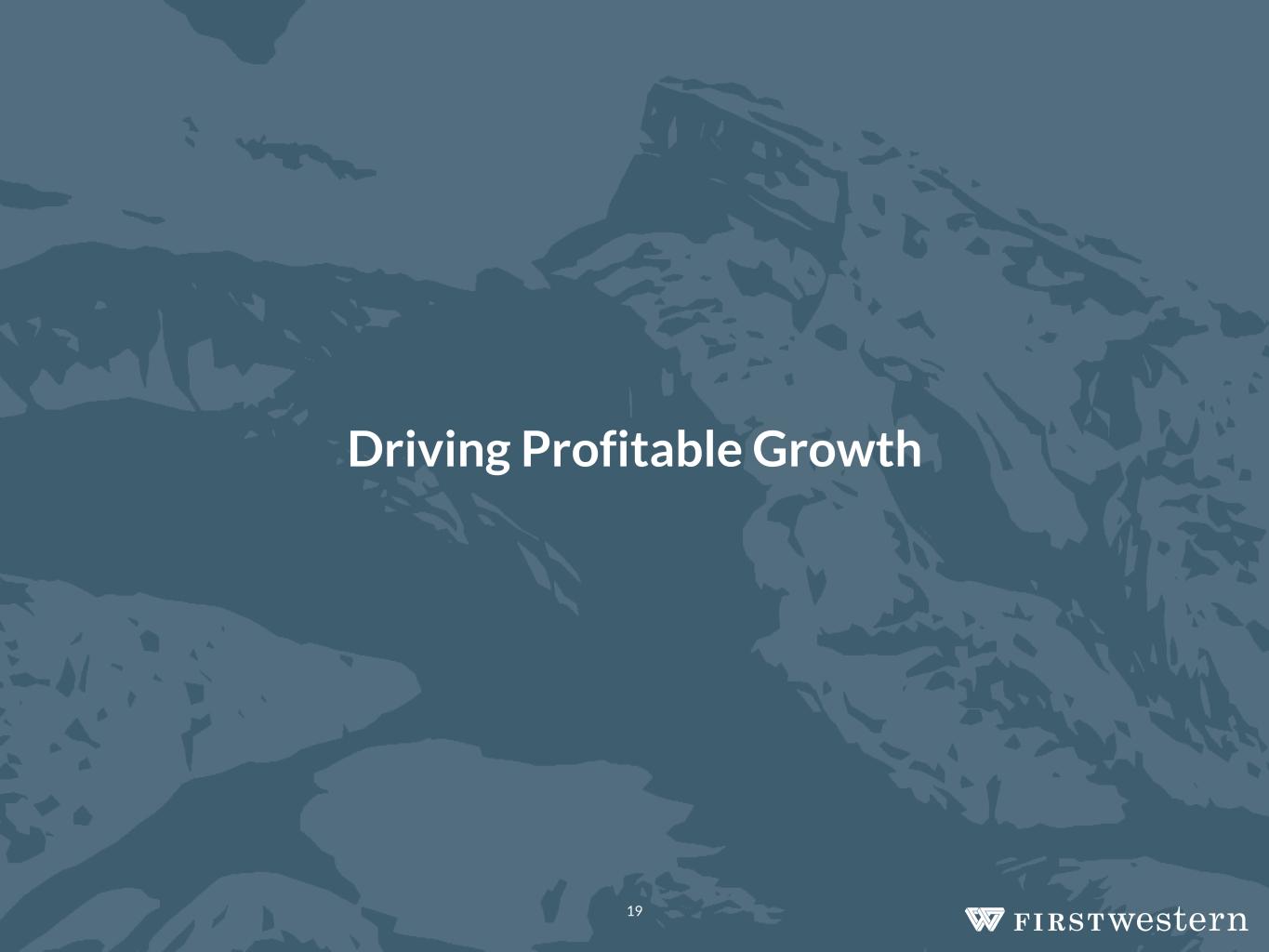 157 180 196 164 166 168 62 94 111 154 161 132 122 125 129 76 78 86 255 255 255 Chart color Table color Special Headlines Slide Headlines / Text on light background Primary Colors Secondary Colors Primary Background / Call Out Boxes / Text on dark background Chart color Table Color Tertiary Colors Chart color Table Color Chart Color Chart Color Approved Fonts AaBbCc 123 Lora (bold) Slide Headlines / Special Headlines AaBbCc 123 Lato(regular, bold, italics) Body Copy / Subheadings / Small Text Descriptions 18 Consistent Success in Adding New Deposit Relationships Unique Value Proposition, Addition of New Banking Talent, and Expansion into Attractive Growth Markets Resulting in Consistent Addition of New Deposit Relationships $32 $82 $226 $316 $464 $680 $828 189 393 893 1,141 1,518 1,765 1,992 New Deposits (cumulative) Number of New Deposits Accounts (cumulative) 2018 2019 2020 2021 2022 2023 2024 $— $100 $200 $300 $400 $500 $600 $700 $800 $900 $1,000 — 500 1,000 1,500 2,000 2,500