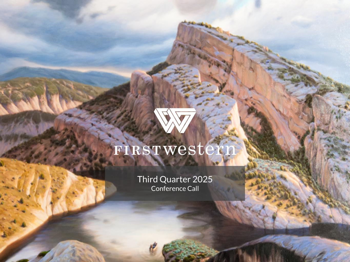 Safe Harbor 2 This presentation contains “forward-looking statements” within the meaning of Section 27A of the Securities Act of 1933, as amended, and Section 21E of the Securities Exchange Act of 1934, as amended. These forward-looking statements reflect the current views of First Western Financial, Inc.’s (“First Western”) management with respect to, among other things, future events and First Western’s financial performance. These statements are often, but not always, made through the use of words or phrases such as “may,” “should,” “could,” “predict,” “potential,” “believe,” “will likely result,” “expect,” “continue,” “will,” “anticipate,” “seek,” “estimate,” “intend,” “plan,” “position,” “project,” “future” “forecast,” “goal,” “target,” “would” and “outlook,” or the negative variations of those words or other comparable words of a future or forward-looking nature. These forward-looking statements are not historical facts, and are based on current expectations, estimates and projections about First Western’s industry, management’s beliefs and certain assumptions made by management, many of which, by their nature, are inherently uncertain and beyond First Western’s control. Accordingly, First Western cautions you that any such forward-looking statements are not guarantees of future performance and are subject to risks, assumptions and uncertainties that are difficult to predict. Although First Western believes that the expectations reflected in these forward-looking statements are reasonable as of the date made, actual results may prove to be materially different from the results expressed or implied by the forward-looking statements. The following risks and uncertainties, among others, could cause actual results and future events to differ materially from those set forth or contemplated in the forward-looking statements: the risk of geographic concentration in Colorado, Arizona, Wyoming, California, and Montana; the risk of changes in the economy affecting real estate values and liquidity; the risk in our ability to continue to originate residential real estate loans and sell such loans; risks specific to commercial loans and borrowers; the risk of claims and litigation pertaining to our fiduciary responsibilities; the risk of changes in interest rates could reduce our net interest margins and net interest income; increased credit risk, including as a result of deterioration in economic conditions, could require us to increase our allowance for credit losses and could have a material adverse effect on our results of operations and financial condition; the risk in our ability to maintain a strong core deposit base or other low-cost funding sources. Additional information regarding these and other risks and uncertainties to which our business and future financial performance are subject is contained in our Annual Report on Form 10-K filed with the U.S. Securities and Exchange Commission (“SEC”) on March 7, 2025 and other documents we file with the SEC from time to time. All subsequent written and oral forward-looking statements attributable to First Western or persons acting on First Western’s behalf are expressly qualified in their entirety by this paragraph. Forward-looking statements speak only as of the date of this presentation. First Western undertakes no obligation to publicly update or otherwise revise any forward-looking statements, whether as a result of new information, future events or otherwise (except as required by law). This presentation contains certain non-GAAP financial measures intended to supplement, not substitute for, comparable GAAP measures. Reconciliations of non-GAAP financial measures to GAAP financial measures are provided at the end of this presentation. Numbers in the presentation may not sum due to rounding. Our common stock is not a deposit or savings account. Our common stock is not insured by the Federal Deposit Insurance Corporation or any governmental agency or instrumentality. Except as otherwise indicated, this presentation speaks as of the date hereof. The delivery of this presentation shall not, under any circumstances, create any implication that there has been no change in the affairs of the Company after the date hereof.