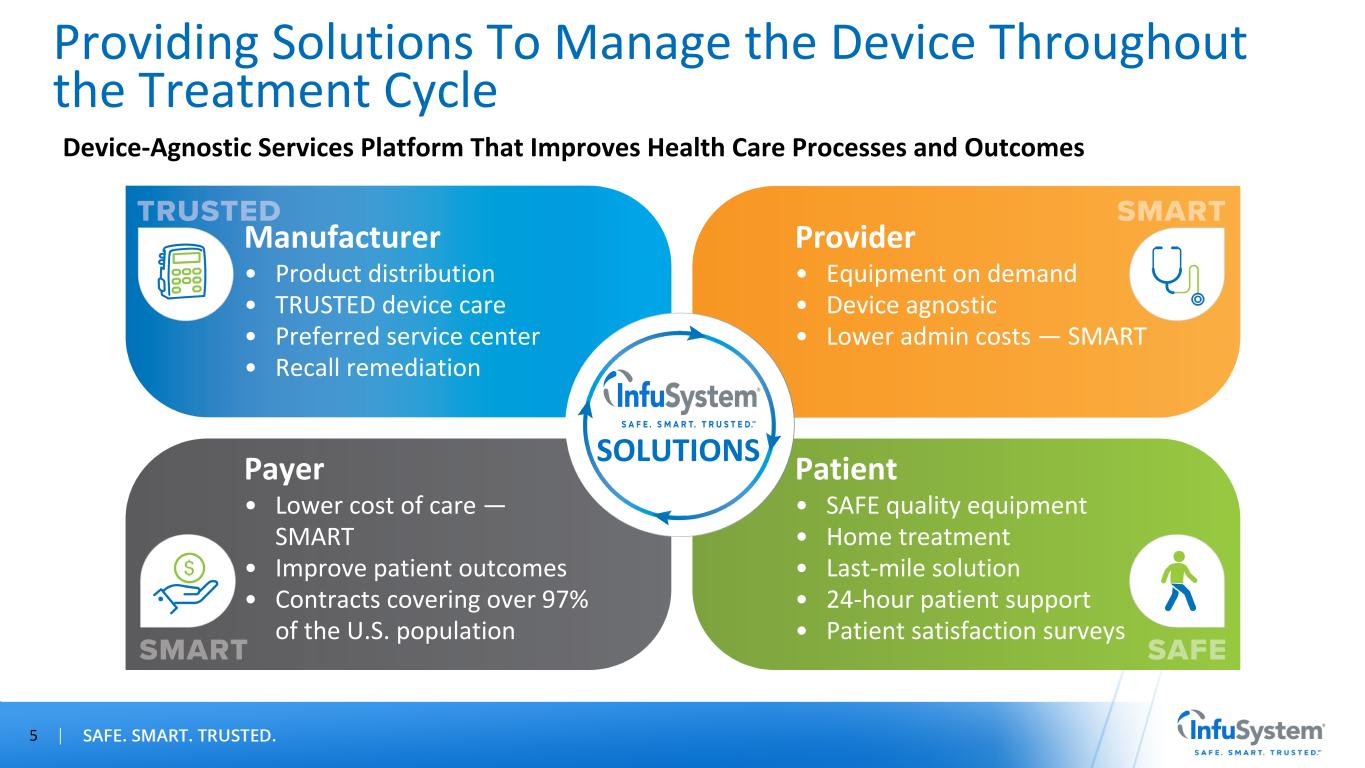 *Source: U.S. News & World Report, Best Hospitals 2025 4 Business Highlights A leading provider of medical equipment and patient services powered by a 100k+ device fleet in the U.S. and Canada Over four decades of experience, built on existing Oncology therapy model and now rapidly expanding into multiple therapies National scale, serving 19 out of 20 top-ranked hospital systems nationwide* Participating in-network provider in more than 800 health insurance networks covering over 97% of the U.S. population, serving over 2,000 sites of care Serving nearly 4,500 customer locations Seven major service areas in the U.S. and Canada with more than 450 employees