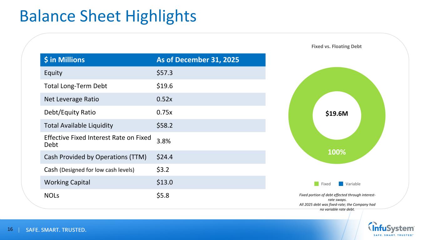 Annual Margin Performance 15 Gross Margin 59.4% 57.2% 55.1% 50.2% 52.2% 56.0% 2020 2021 2022 2023 2024 2025 —% 10.0% 20.0% 30.0% 40.0% 50.0% 60.0% Adjusted EBITDA Margin (1)(2) 26.9% 23.5% 18.9% 17.8% 18.8% 21.9% 2020 2021 2022 2023 2024 2025 —% 5.0% 10.0% 15.0% 20.0% 25.0% 30.0% Patient Services Gross Margin 65.1% 64.1% 63.1% 62.5% 65.7% 64.0% 2020 2021 2022 2023 2024 2025 —% 10.0% 20.0% 30.0% 40.0% 50.0% 60.0% 70.0% Device Solutions Gross Margin 49.9% 44.8% 41.8% 31.1% 32.2% 43.8% 2020 2021 2022 2023 2024 2025 —% 10.0% 20.0% 30.0% 40.0% 50.0% 60.0% Patient Services (formerly ITS) Device Solutions (formerly DME) *2020 includes favorable COVID-19 impact on AEBITDA. (1) See Appendix A. (2) Includes $0.7M in 2024 and $2.6M in 2025 for expenses associated with a project to upgrade the Company’s information technology and business applications included a replacement of the ERP application.