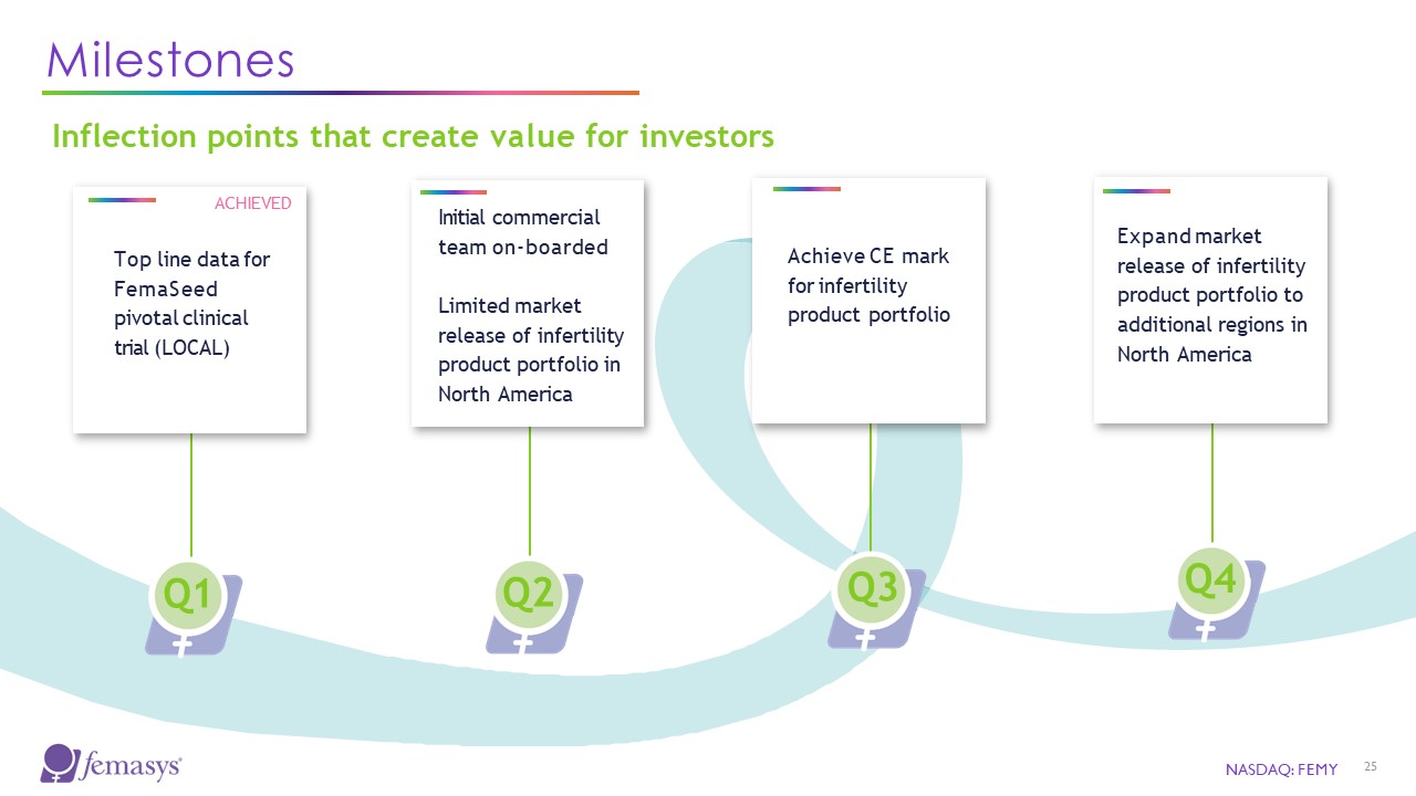 Milestones  Q1  Top line data for FemaSeed pivotal clinical trial (LOCAL)  Inflection points that create value for investors  NASDAQ: FEMY  25  Initial commercial  team on-boarded  Limited market  release of infertility product portfolio in North America  Achieve CE mark for infertility product portfolio  Expand market release of infertility product portfolio to additional regions in North America  Q2  Q3  Q4  ACHIEVED