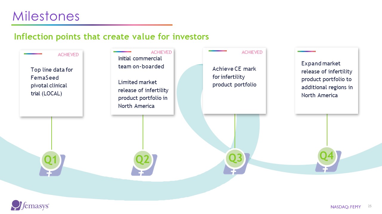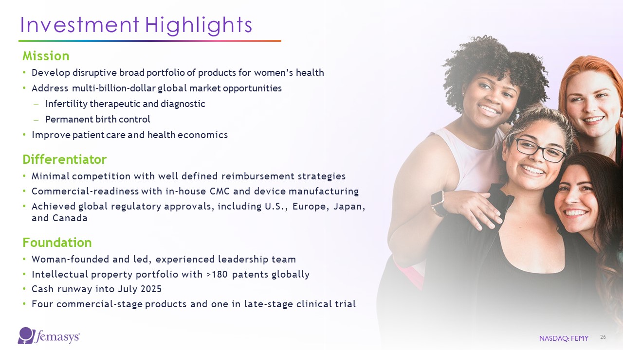 Milestones  Q1  Top line data for FemaSeed pivotal clinical trial (LOCAL)  Inflection points that create value for investors  NASDAQ: FEMY  25  Initial commercial  team on-boarded  Limited market  release of infertility product portfolio in North America  Achieve CE mark for infertility product portfolio  Expand market release of infertility product portfolio to additional regions in North America  Q2  Q3  Q4  ACHIEVED  ACHIEVED  ACHIEVED
