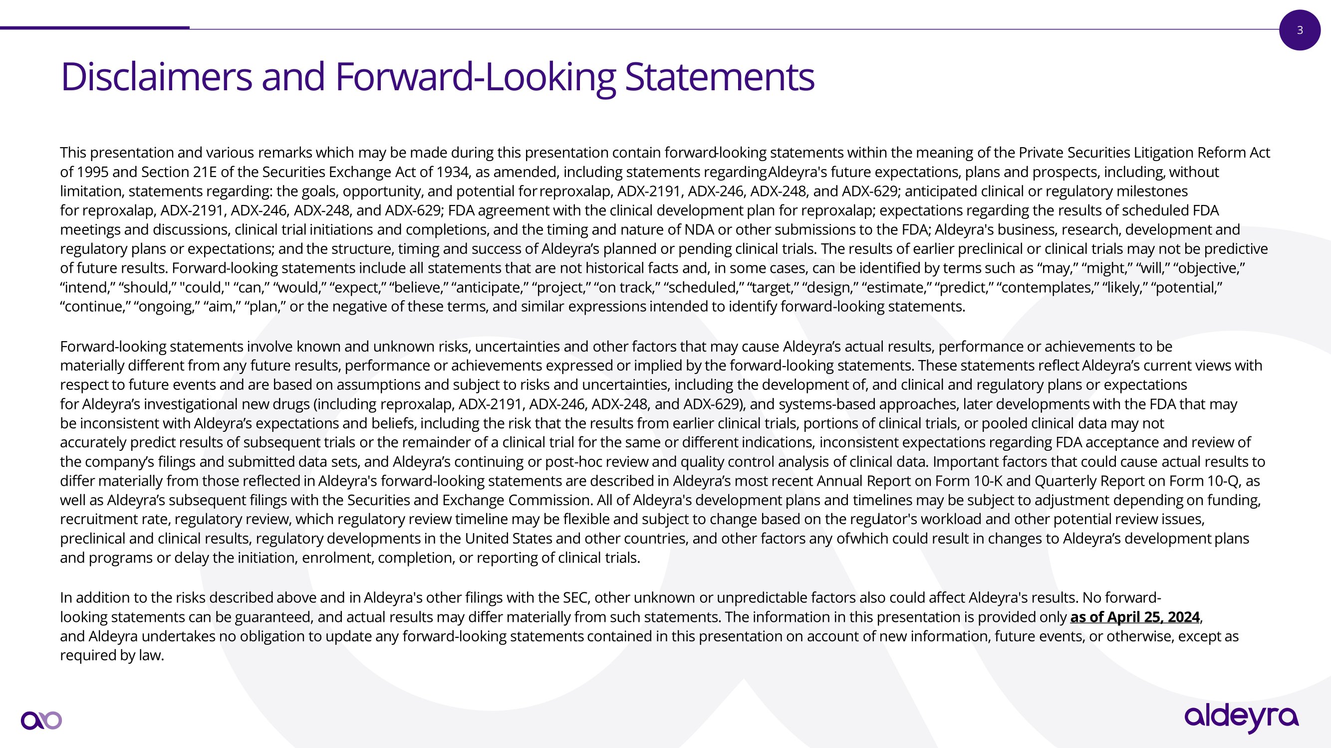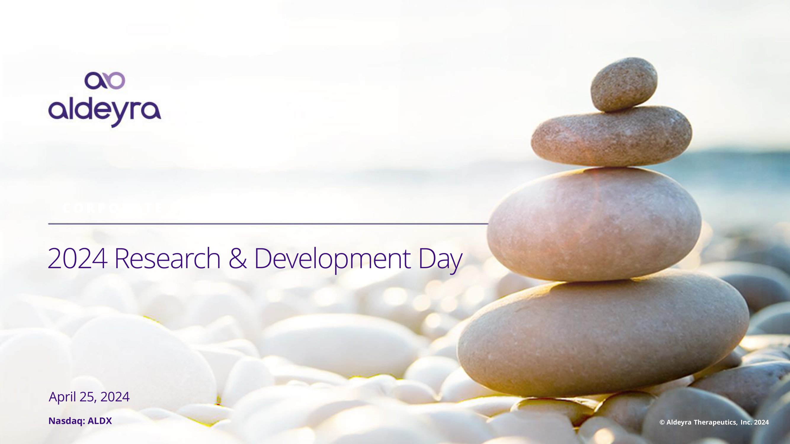 202 4 R e s e a r c h & D e v e l o p m e n t D a y C O R P O A T E O A p r i l 25 , 202 4 Nasdaq: ALDX © Aldeyra Therapeutics, Inc. 2024