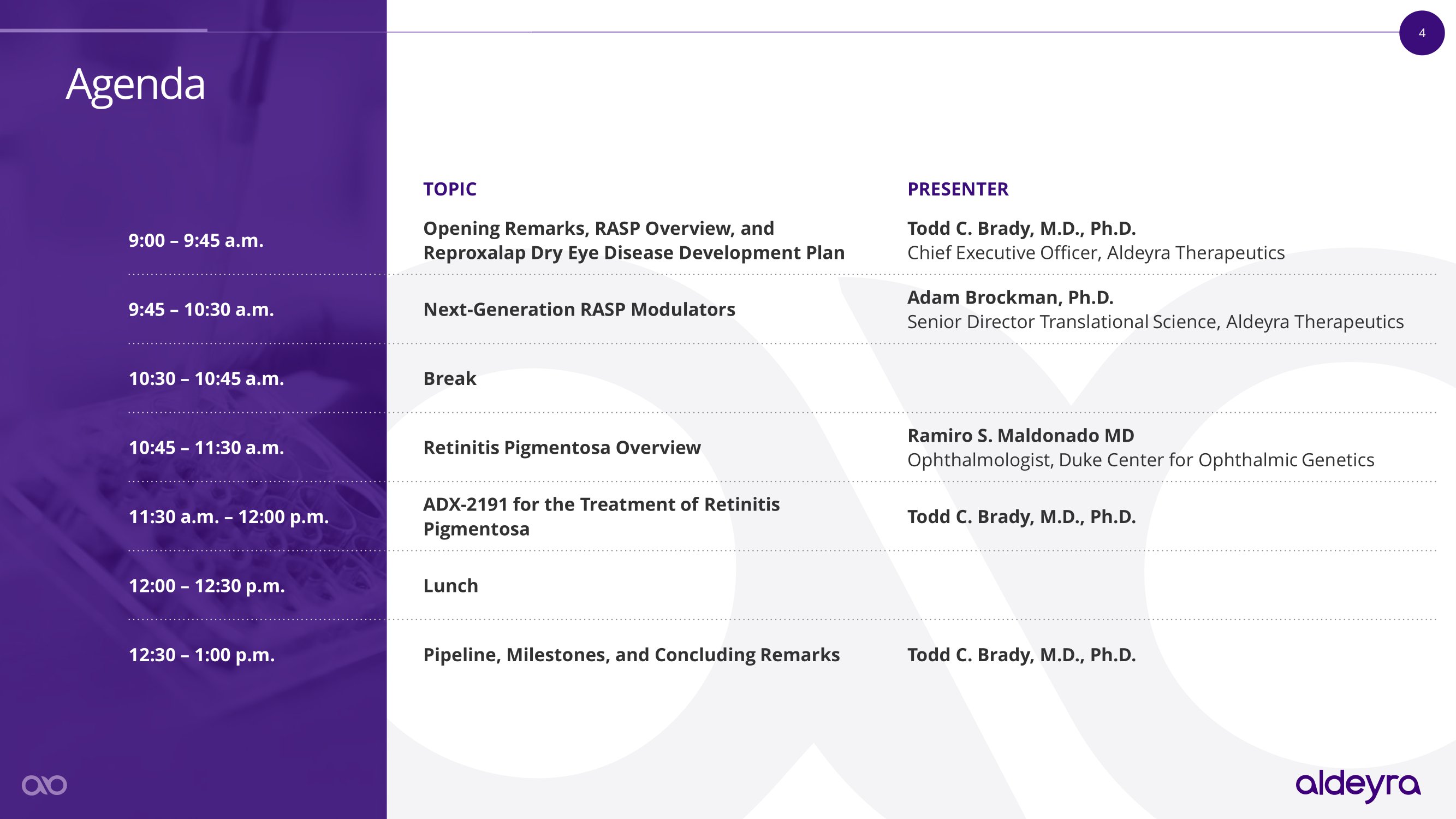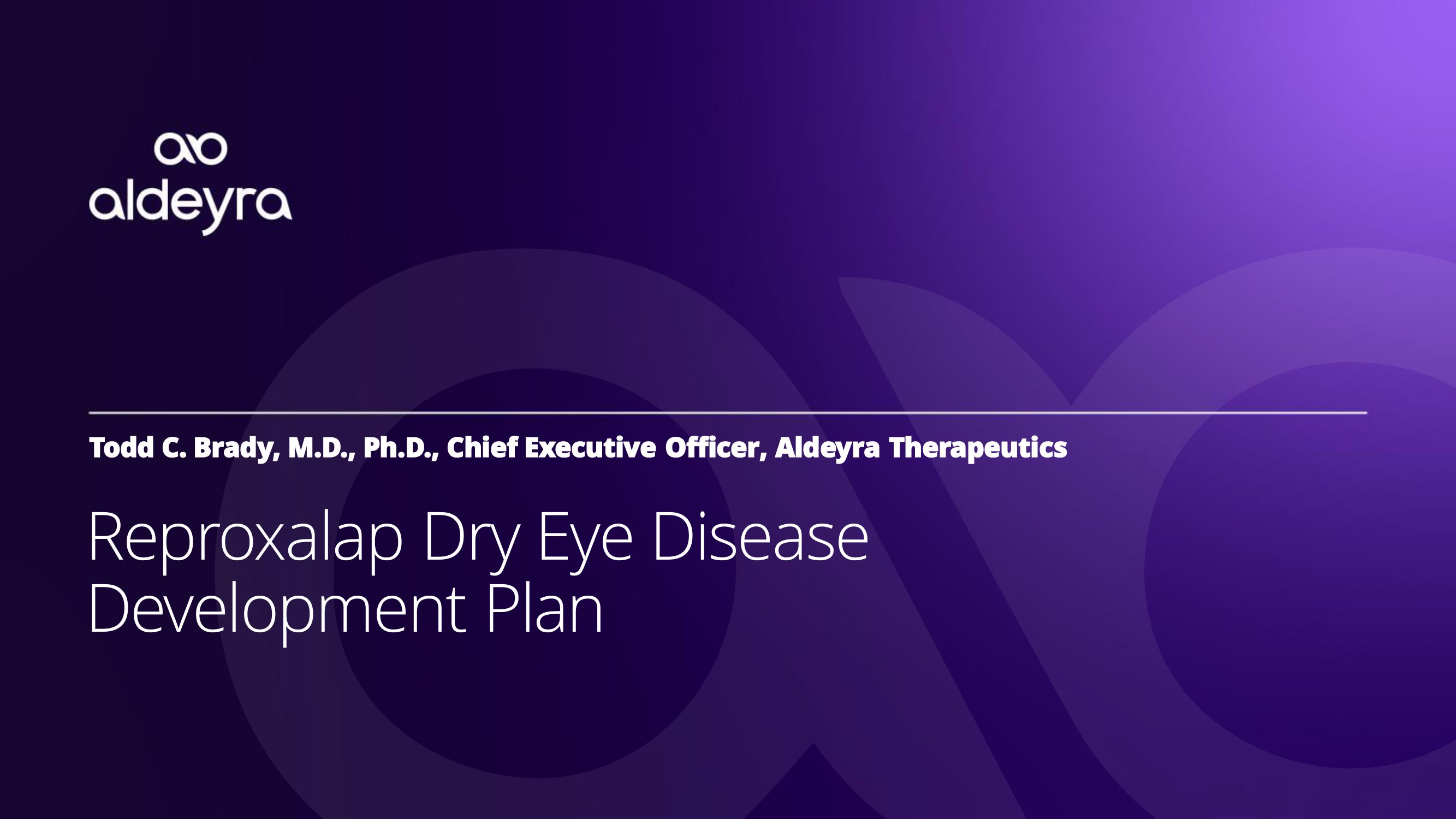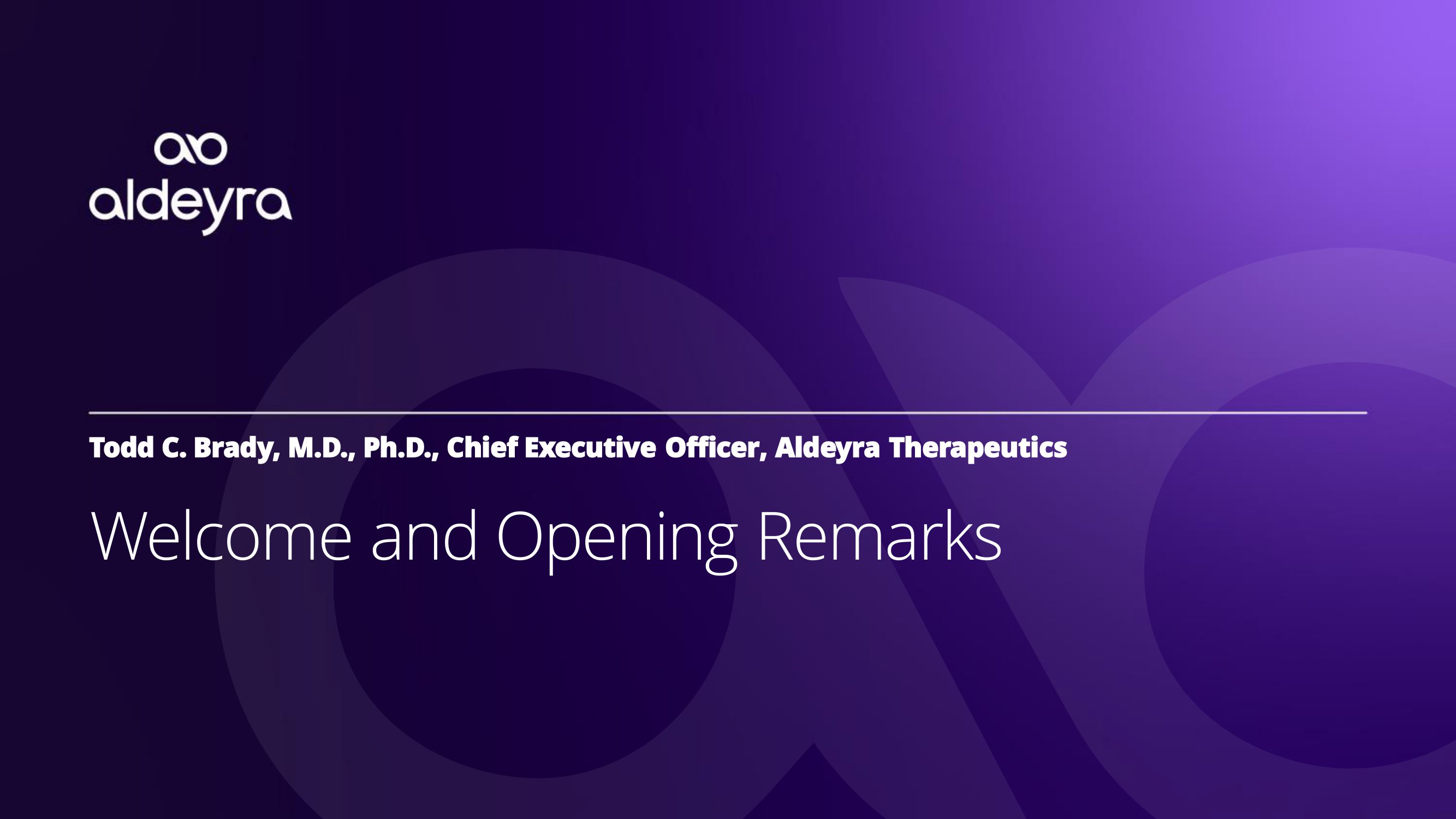Todd C. Brady, M.D., Ph.D., Chief Executive Officer, Aldeyra Therapeutics W e l c o m e a n d O p e n i n g R e m a r k s