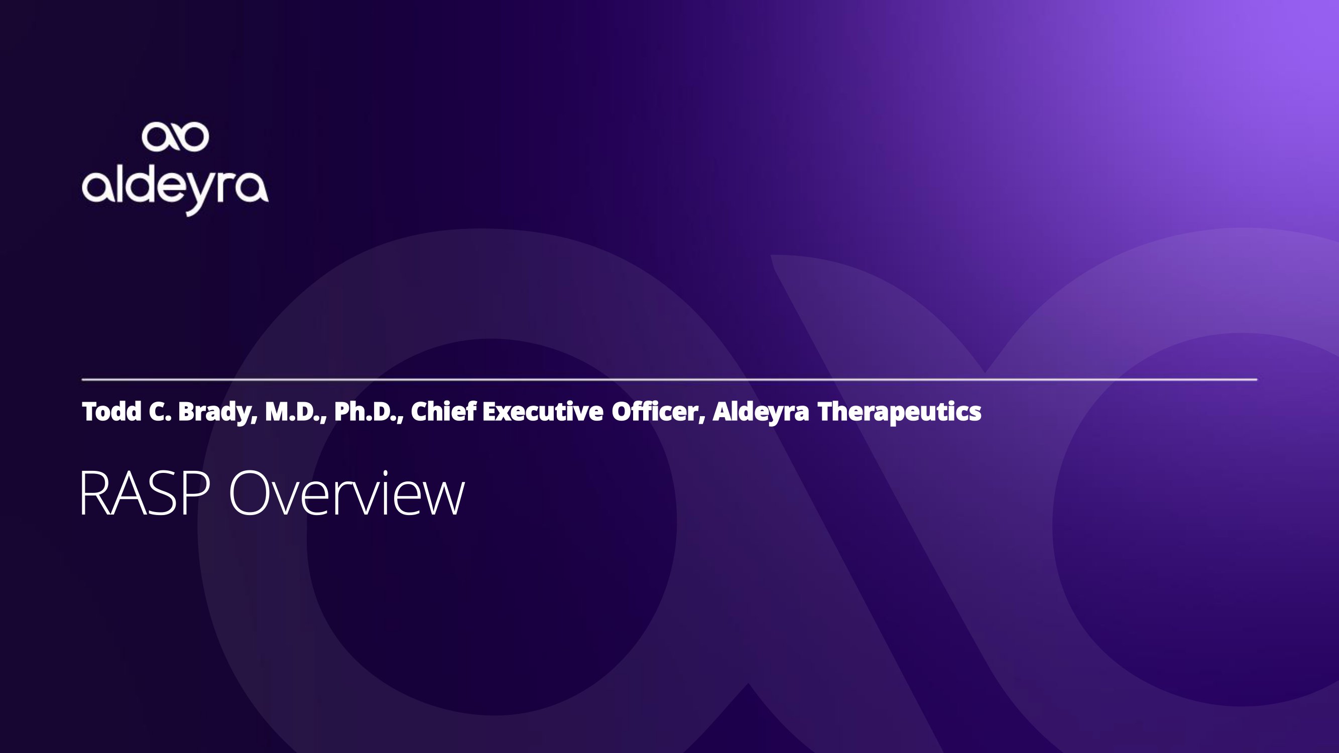 Todd C. Brady, M.D., Ph.D., Chief Executive Officer, Aldeyra Therapeutics R A S P O v e r v i e w
