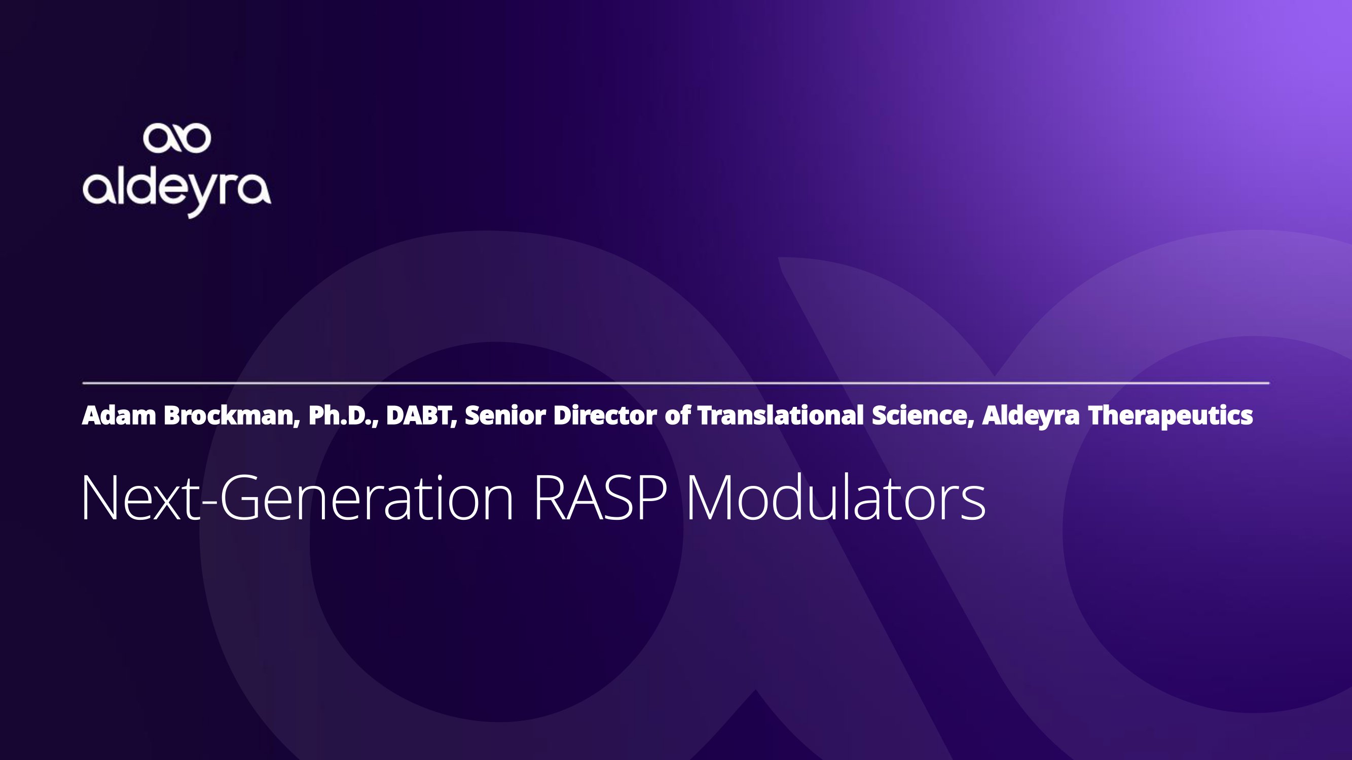 Adam Brockman, Ph.D., DABT, Senior Director of Translational Science, Aldeyra Therapeutics N e x t - G e n e r a t i o n R A S P M o d u l a t o r s