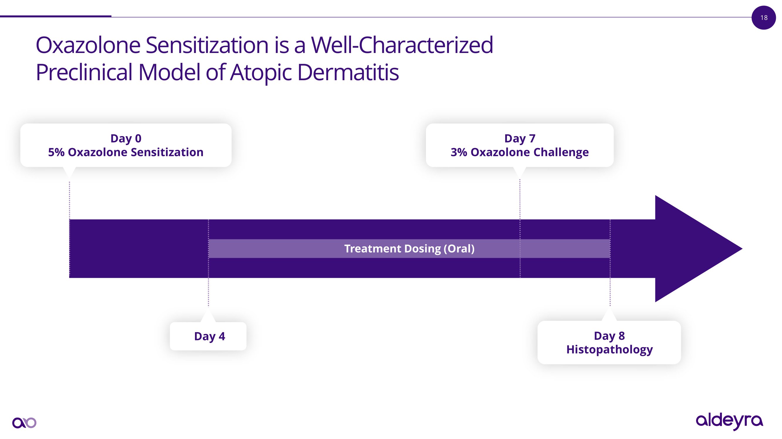 17 Statistical and Clinically Significant Improvement was Observed in Phase 2 Clinical Trial of RASP Modulator ADX - 629 in Atopic Dermatitis ADX - 629 is an investigational drug candidate. SEM = standard error of mean. Eczema Area and Severity Index (EASI) Investigator Global Assessment Patient - Reported Itching Score Patient - Oriented Eczema Measure I n v e s t i g a t o r - Assessed Patient - R e por t e d