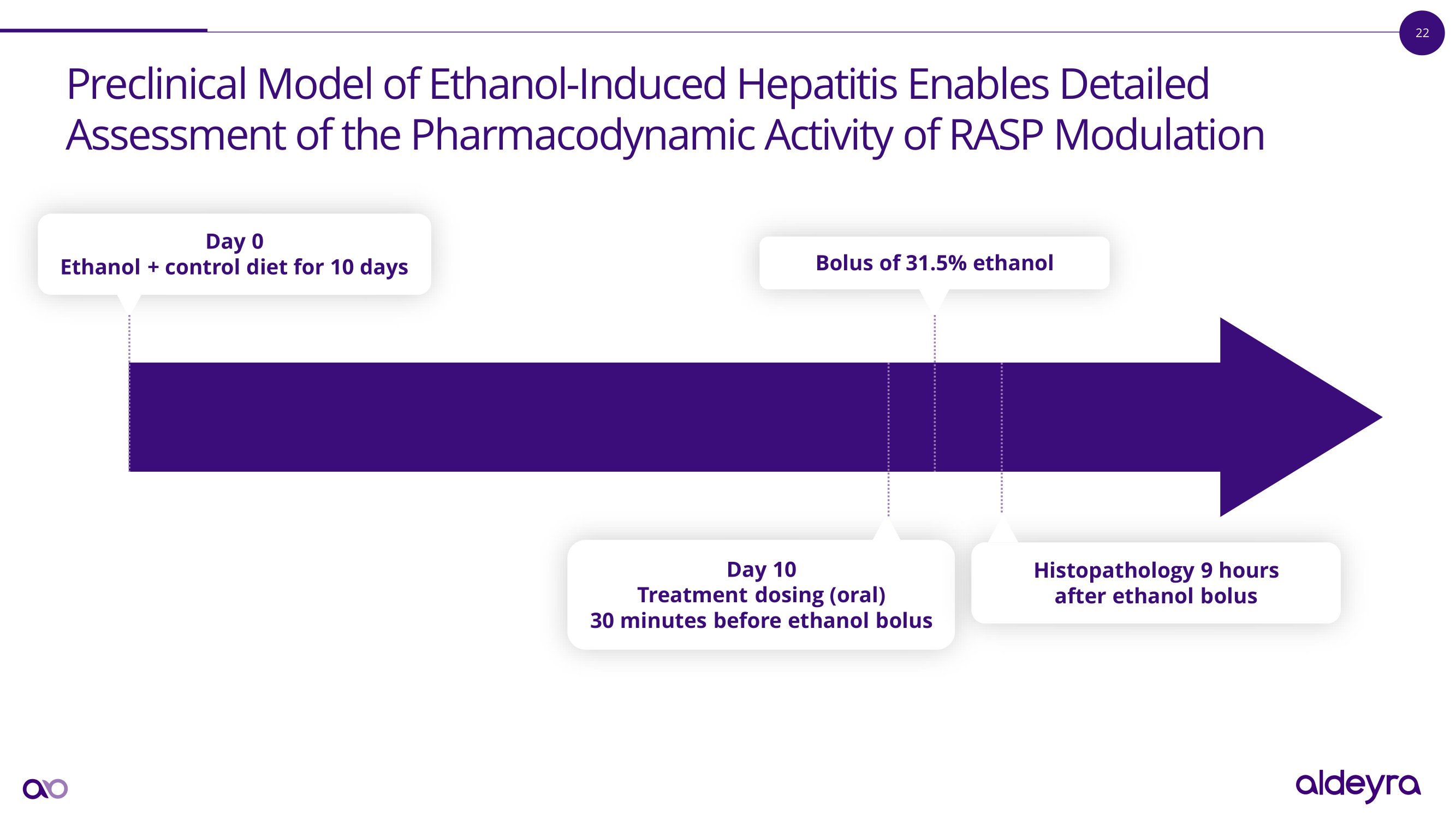 22 Preclinical Model of Ethanol - Induced Hepatitis Enables Detailed Assessment of the Pharmacodynamic Activity of RASP Modulation Day 10 Treatment dosing (oral) 30 minutes before ethanol bolus Day 0 Ethanol + control diet for 10 days Bolus of 31.5% ethanol Histopathology 9 hours after ethanol bolus