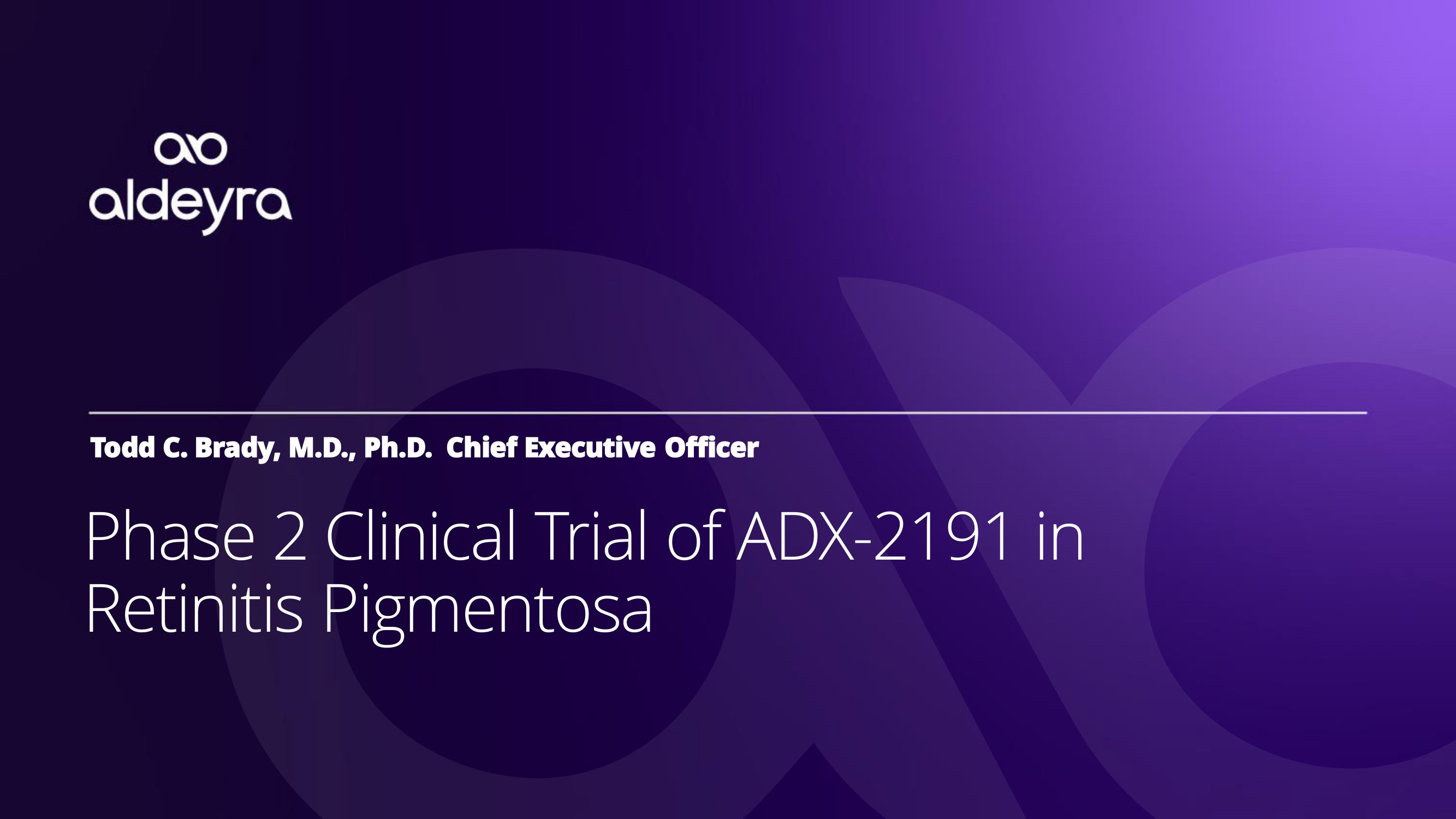 Todd C. Brady, M.D., Ph.D. Chief Executive Officer P h a s e 2 C li n i c a l T r i a l o f A D X - 2 19 1 i n Retinitis Pigmentosa