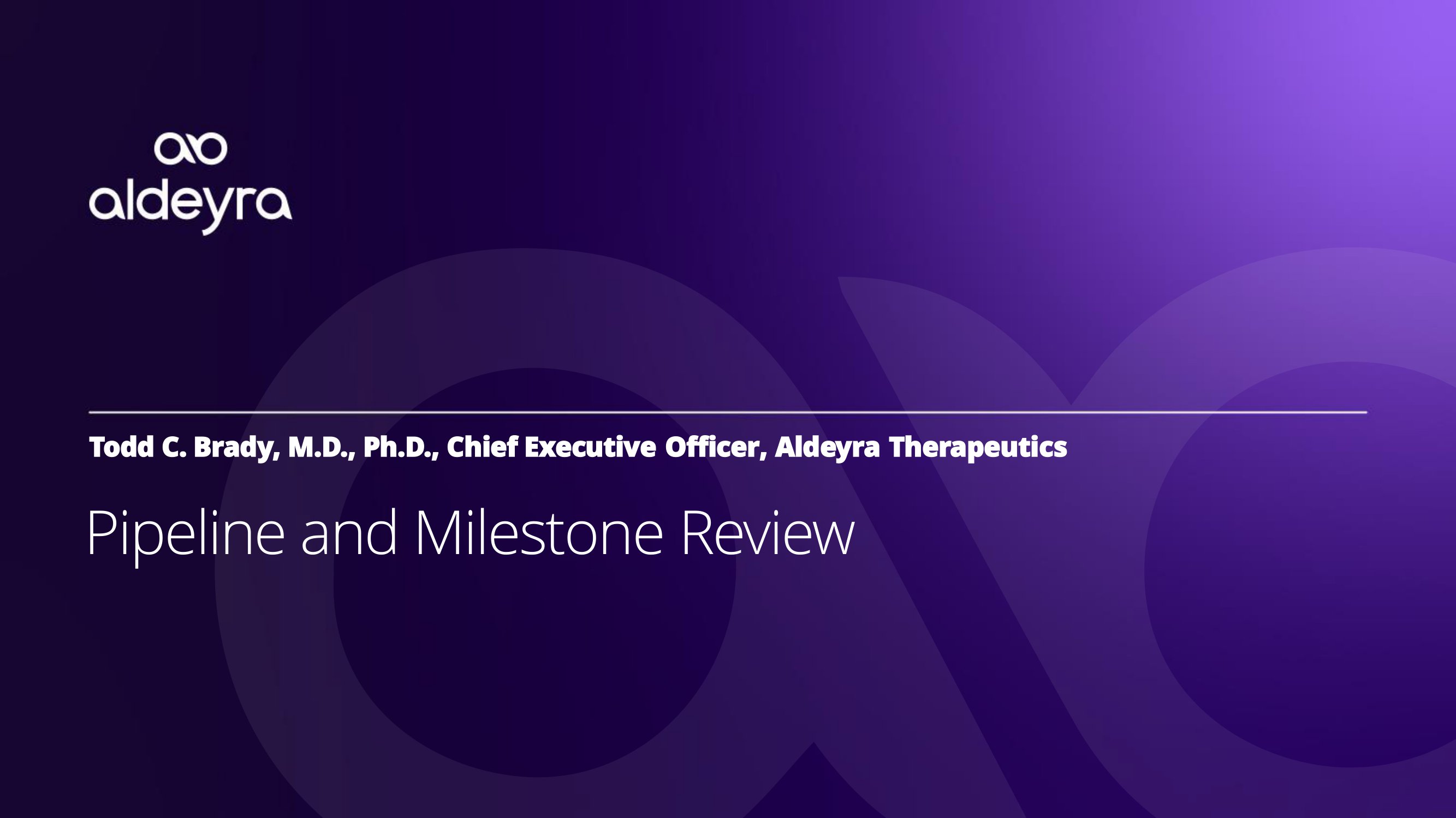 Todd C. Brady, M.D., Ph.D., Chief Executive Officer, Aldeyra Therapeutics P i p e li n e a n d M il e s t o n e R e v i e w