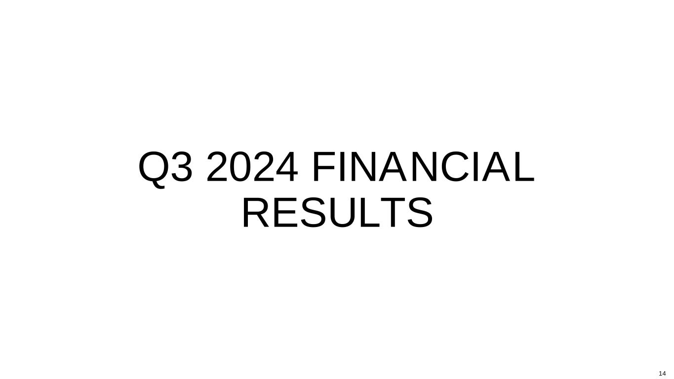 C E LS I US HO LD IN GS , IN C . | QU A RT E R 3, 2 02 4 IN V E S TOR P R E S E N TAT ION Q3 2024 FINANCIAL RESULTS 14