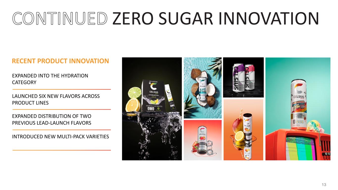 ZERO SUGAR INNOVATION EXPANDED INTO THE HYDRATION CATEGORY LAUNCHED SIX NEW FLAVORS ACROSS PRODUCT LINES EXPANDED DISTRIBUTION OF TWO PREVIOUS LEAD-LAUNCH FLAVORS INTRODUCED NEW MULTI-PACK VARIETIES RECENT PRODUCT INNOVATION 13