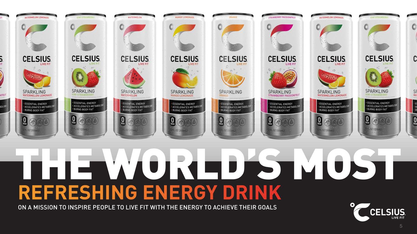 THEMES LARGE AND GROWING TAM - CATEGORY DISRUPTOR - COMPELLING GROWTH STRATEGY - Portfolio of disruptive, premium brands driving the functional beverage category with unparalleled innovation capabilities Effective strategy and innovation to reach more people, in more places, more often Attractively positioned for expansion as an innovative leader in the large, growing functional beverage category Deploy through disciplined capital allocation, driving continued growth and higher returns EXPECTED TO BE ACCELERATED BY PENDING ACQUISITION OF ALANI NU STRONG CASH GENERATION PROFILE - 4