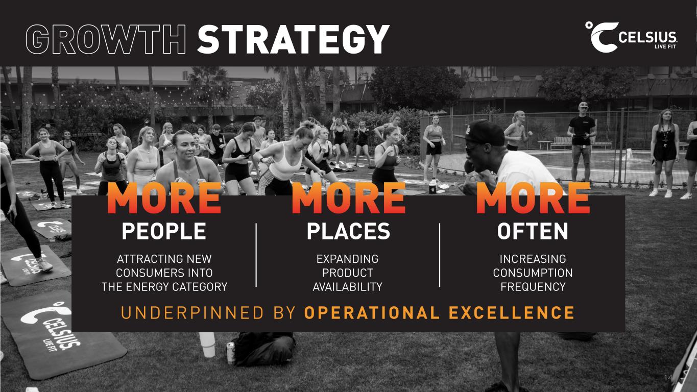 Function, backed by science A category leader in the growing health, wellness & fitness segment1 Differentiated sales & marketing approach creates significant demand Continuous innovation with the introduction of new flavors & products Loyal consumer base Strong brand affinity 1 2 3 4 5 6 Best in class operations & supply chain capabilities7 STRONG COMPETITIVE ADVANTAGES NOTES: 1. Circana U.S. MULO+ W/C, RTD Energy Full Year 2024 13