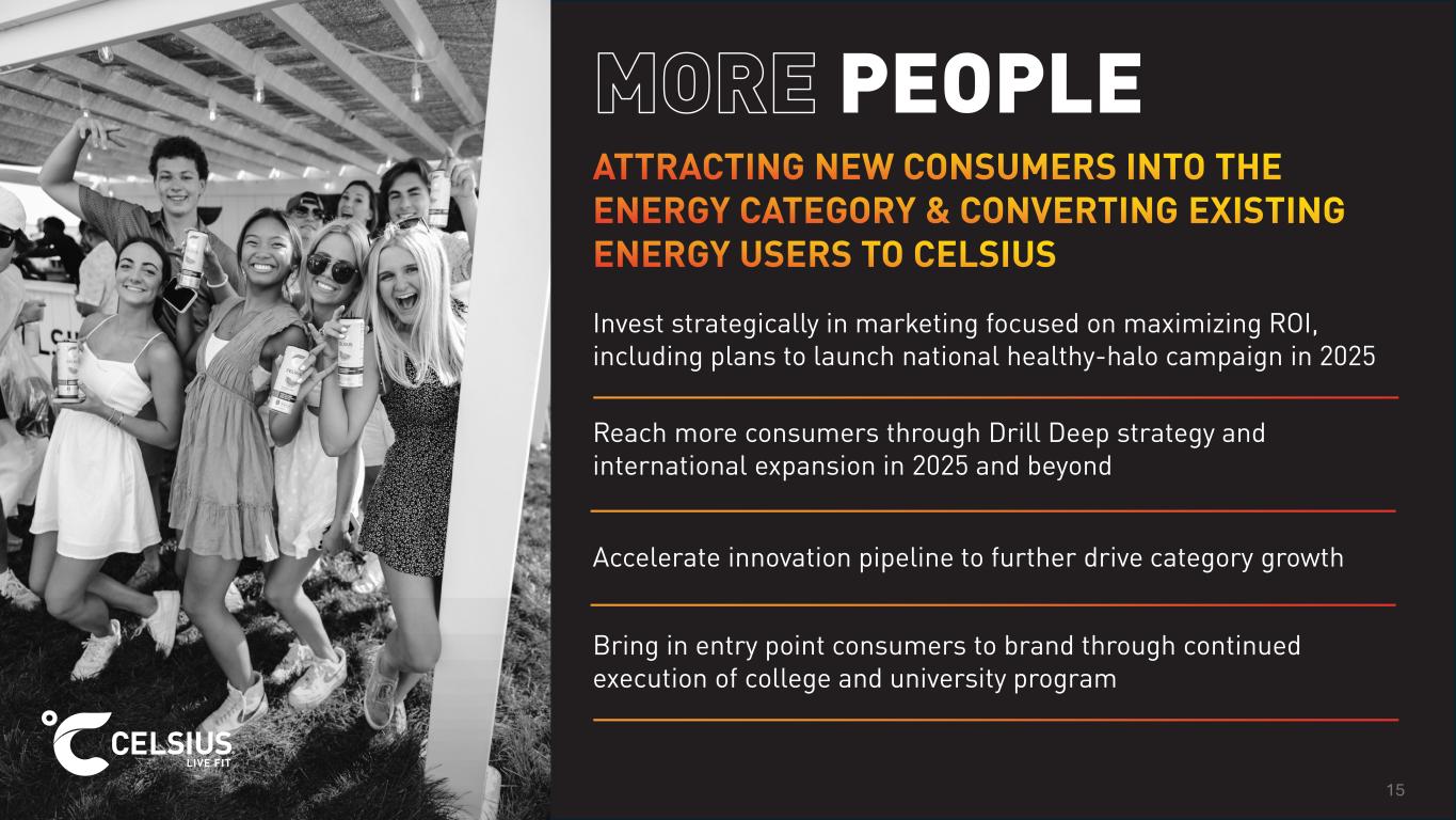 PEOPLE Invest strategically in marketing focused on maximizing ROI, including plans to launch national healthy-halo campaign in 2025 Reach more consumers through Drill Deep strategy and international expansion in 2025 and beyond Accelerate innovation pipeline to further drive category growth Bring in entry point consumers to brand through continued execution of college and university program 15