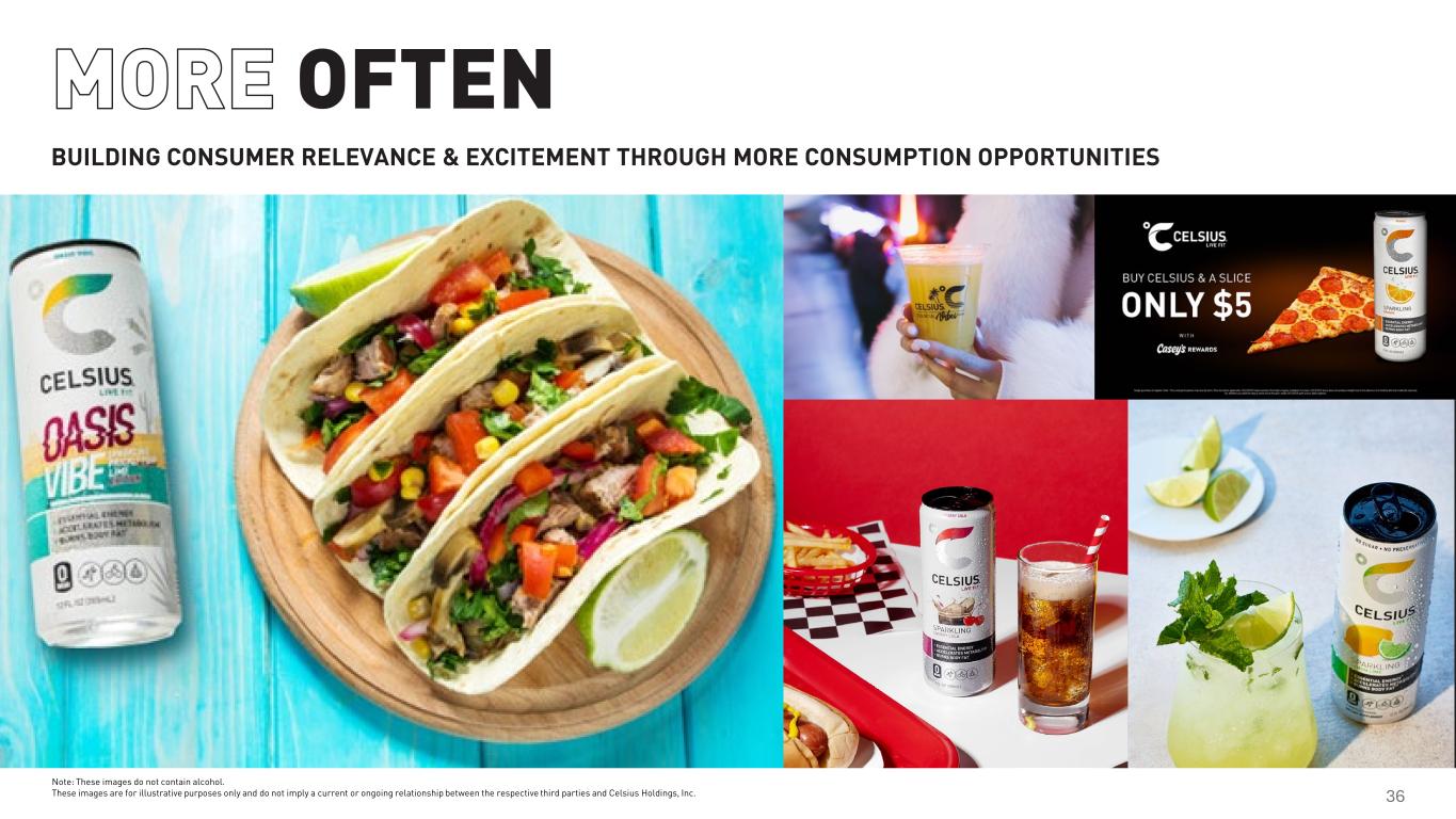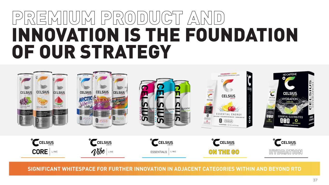 OFTEN BUILDING CONSUMER RELEVANCE & EXCITEMENT THROUGH MORE CONSUMPTION OPPORTUNITIES 36 Note: These images do not contain alcohol. These images are for illustrative purposes only and do not imply a current or ongoing relationship between the respective third parties and Celsius Holdings, Inc.