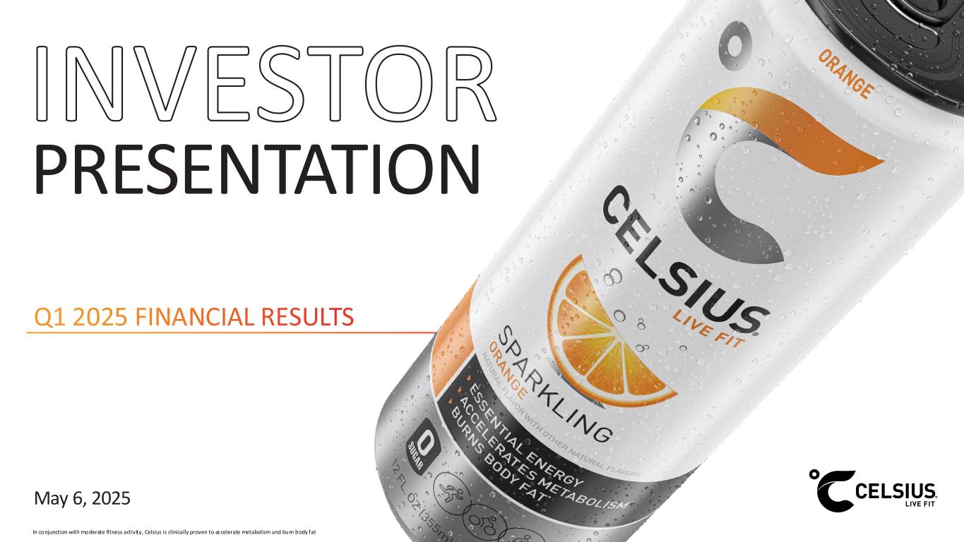 C E LS I US HO LD IN GS , IN C . | QU A RT E R 3, 2 02 4 IN V E S TOR P R E S E N TAT ION INVESTOR Q1 2025 FINANCIAL RESULTS PRESENTATION May 6, 2025​ In conjunction with moderate fitness activity, Celsius is clinically proven to accelerate metabolism and burn body fat