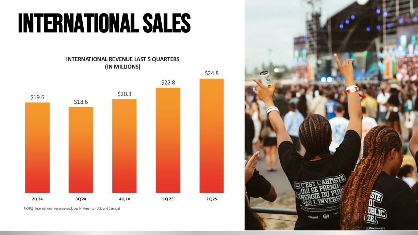 International sales $19.6 $18.6 $20.3 $22.8 $24.8 2Q 24 3Q 24 4Q 24 1Q 25 2Q 25 NOTES: International revenue excludes N. America (U.S. and Canada) INTERNATIONAL REVENUE LAST 5 QUARTERS (IN MILLIONS)