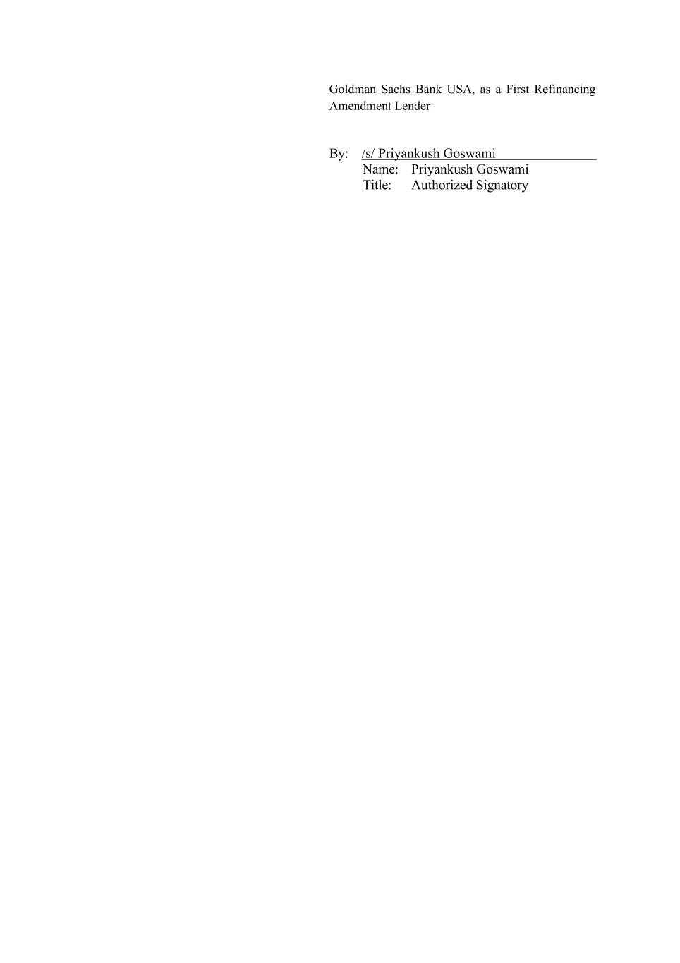 Goldman Sachs Bank USA, as a First Refinancing Amendment Lender By: /s/ Priyankush Goswami Name: Priyankush Goswami Title: Authorized Signatory
