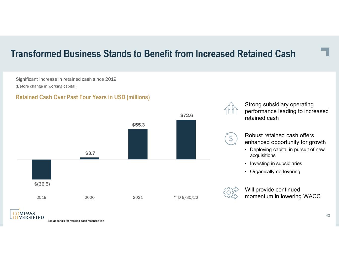 42 42 Transformed Business Stands to Benefit from Increased Retained Cash Significant increase in retained cash since 2019 $(36.5) $3.7 $55.3 $72.6 2019 2020 2021 YTD 9/30/22 (Before change in working capital) See appendix for retained cash reconciliation Strong subsidiary operating performance leading to increased retained cash Robust retained cash offers enhanced opportunity for growth • Deploying capital in pursuit of new acquisitions • Investing in subsidiaries • Organically de-levering Will provide continued momentum in lowering WACC Retained Cash Over Past Four Years in USD (millions)