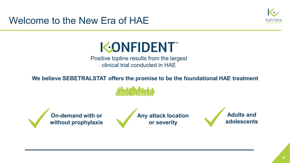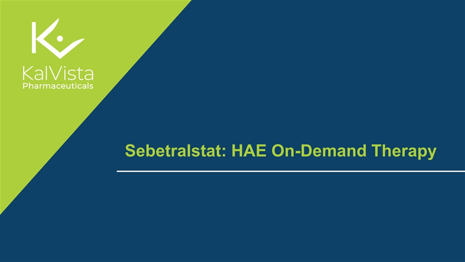 Welcome to the New Era of HAE Positive topline results from the largest clinical trial conducted in HAE We believe SEBETRALSTAT offers the promise to be the foundational HAE treatment Adults and On-demand with or Any attack location adolescents without prophylaxis or severity 9