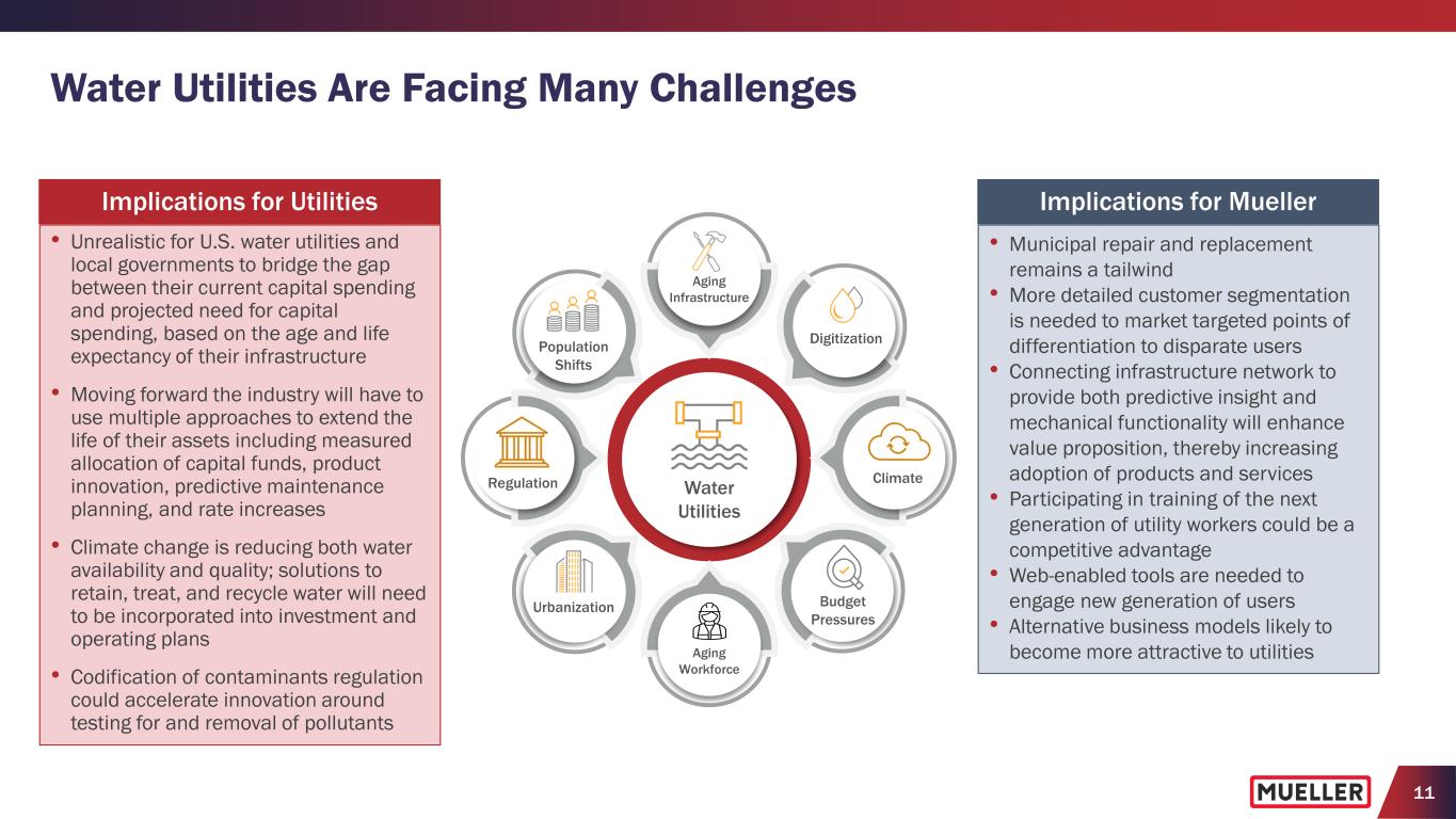 10 Mueller is Uniquely Positioned to Address Opportunities with Utilities with its Leading Infrastructure Products and Installed Base