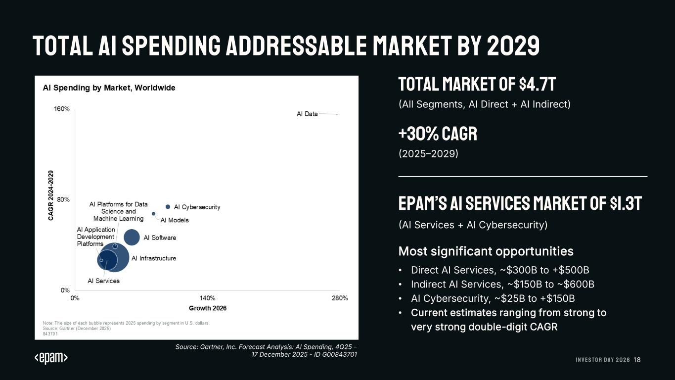 Total IT services addressable market by 2029 Total market of $1.8T (ex. IaaS) Expected to grow ~5% CAGR (2025-2029, ex. IaaS) Source: Gartner, Inc. Market Opportunity Map: IT Services, Worldwide 19 November 2025 - ID G00835557 We’re aligned to faster growing market segments • Business Consulting • Technology Consulting • Application Implementation Which are estimated to grow ~6.5% CAGR (2025-2029, ex. IaaS) 17