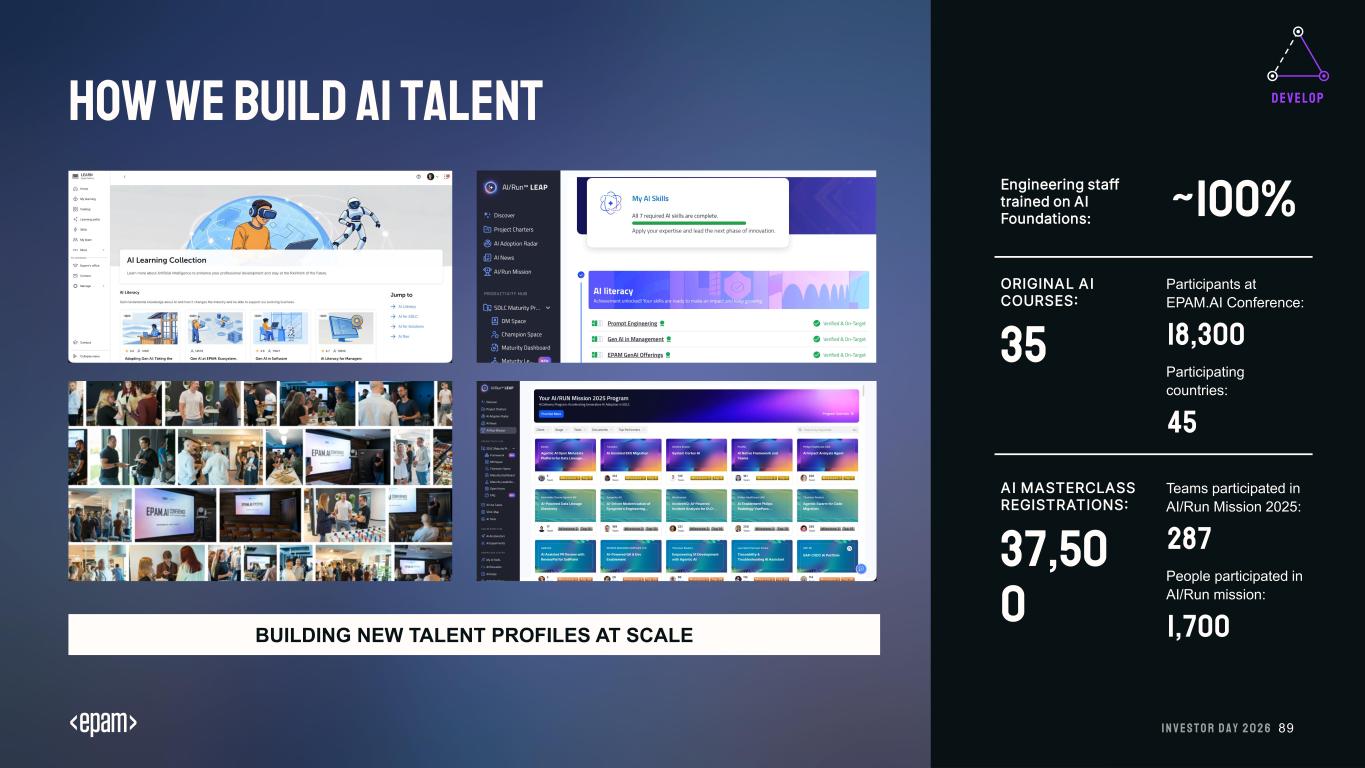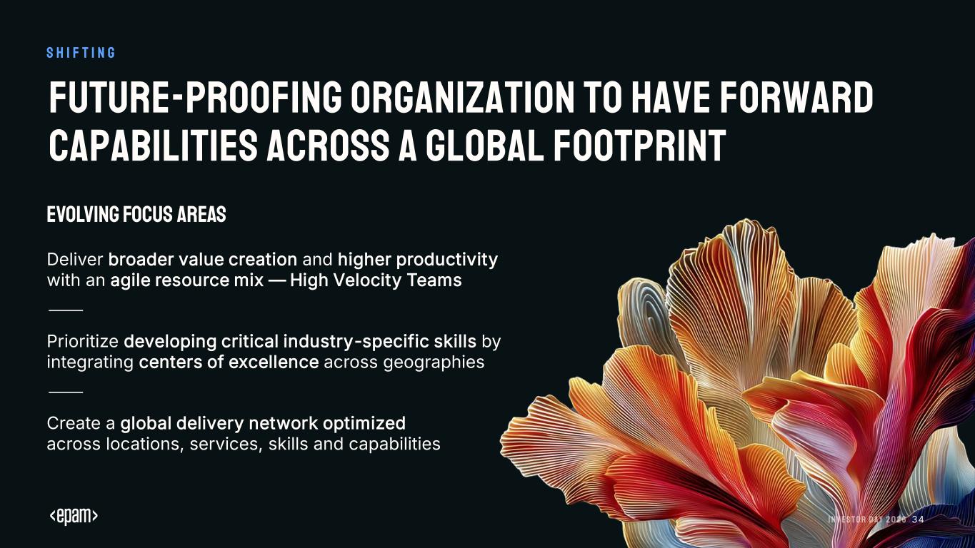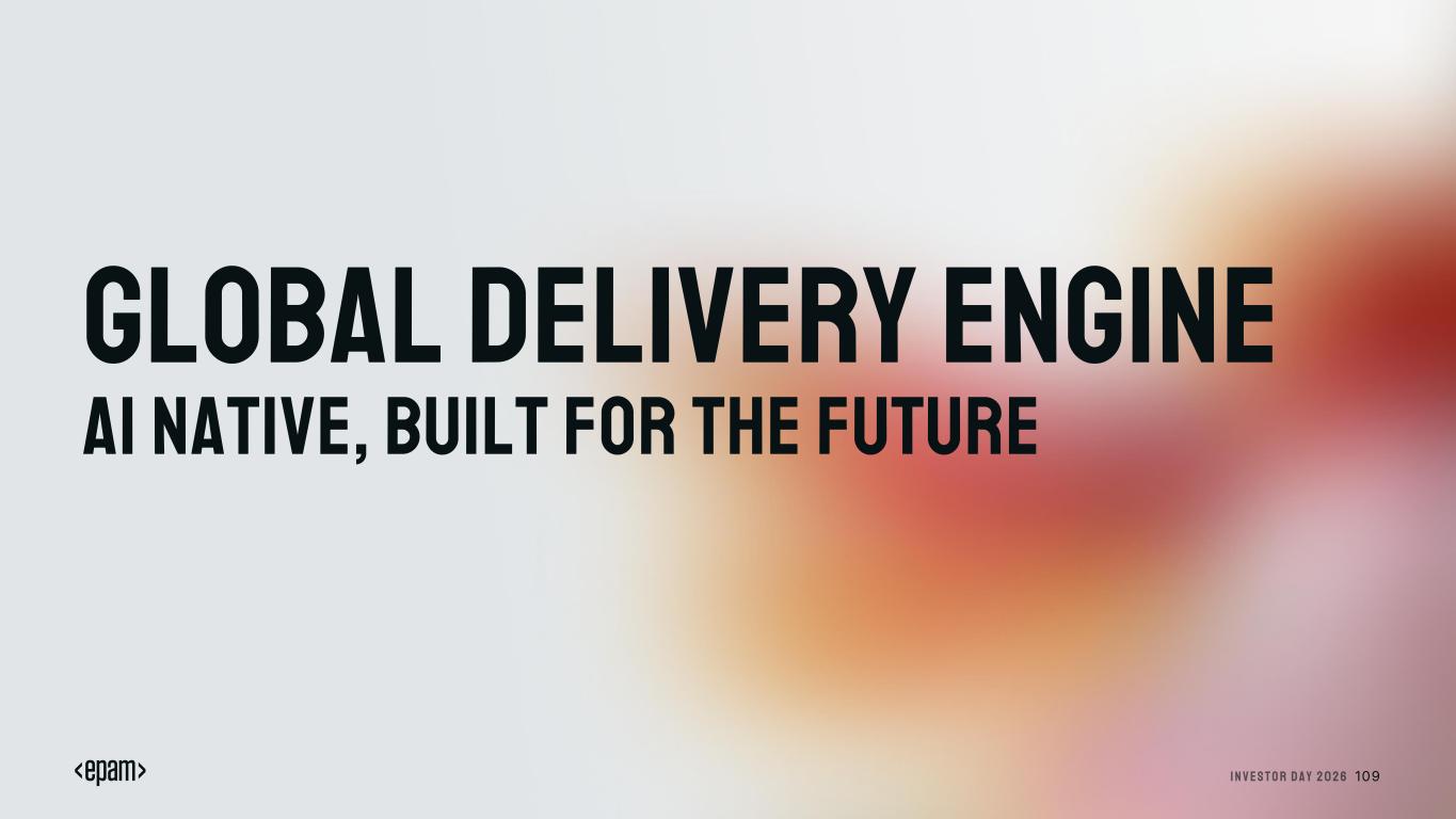 Delivery Professionals By Region As of the end of December 31, 2025EPAM Global Delivery ENGINE - TODAY Optimized, Balanced, Delivery Excellence Everywhere 21% Ukraine & Belarus -38% 56,627 Delivery Professionals 104