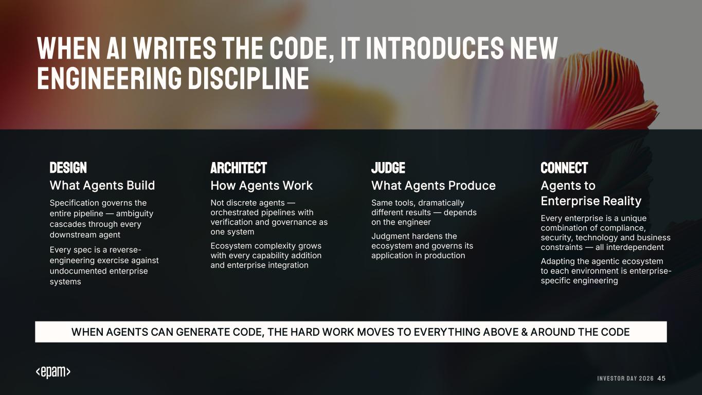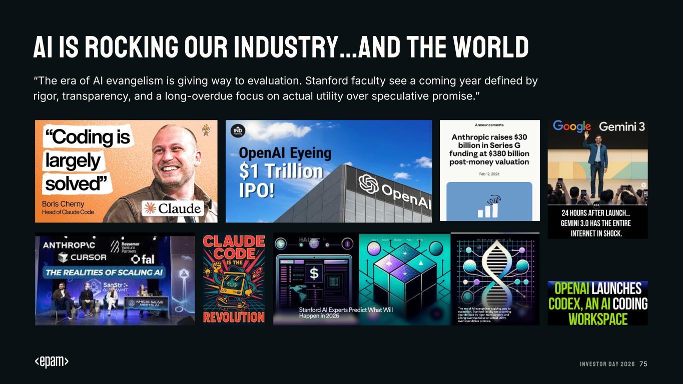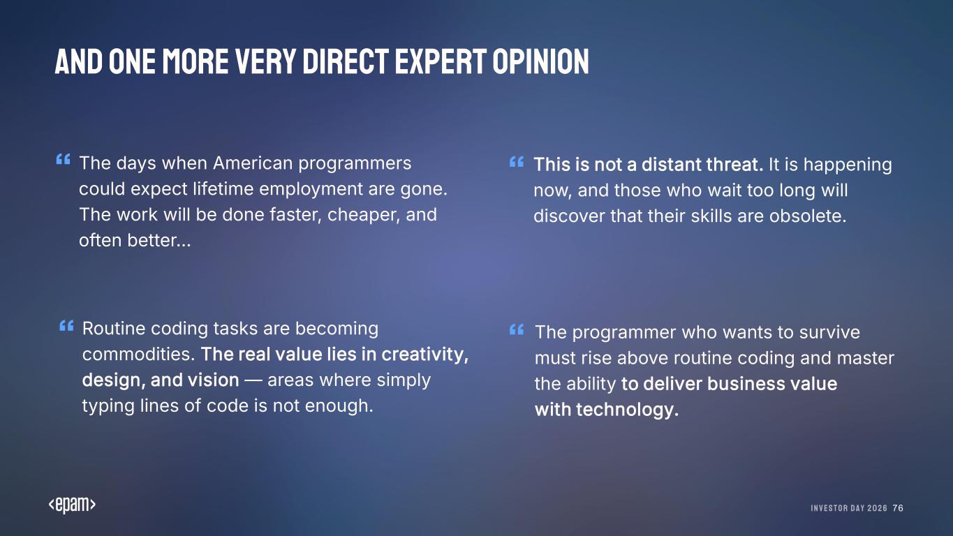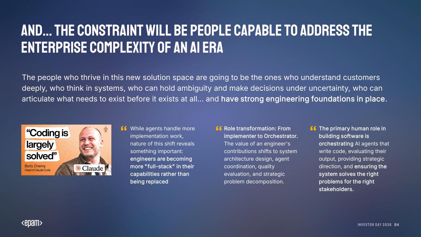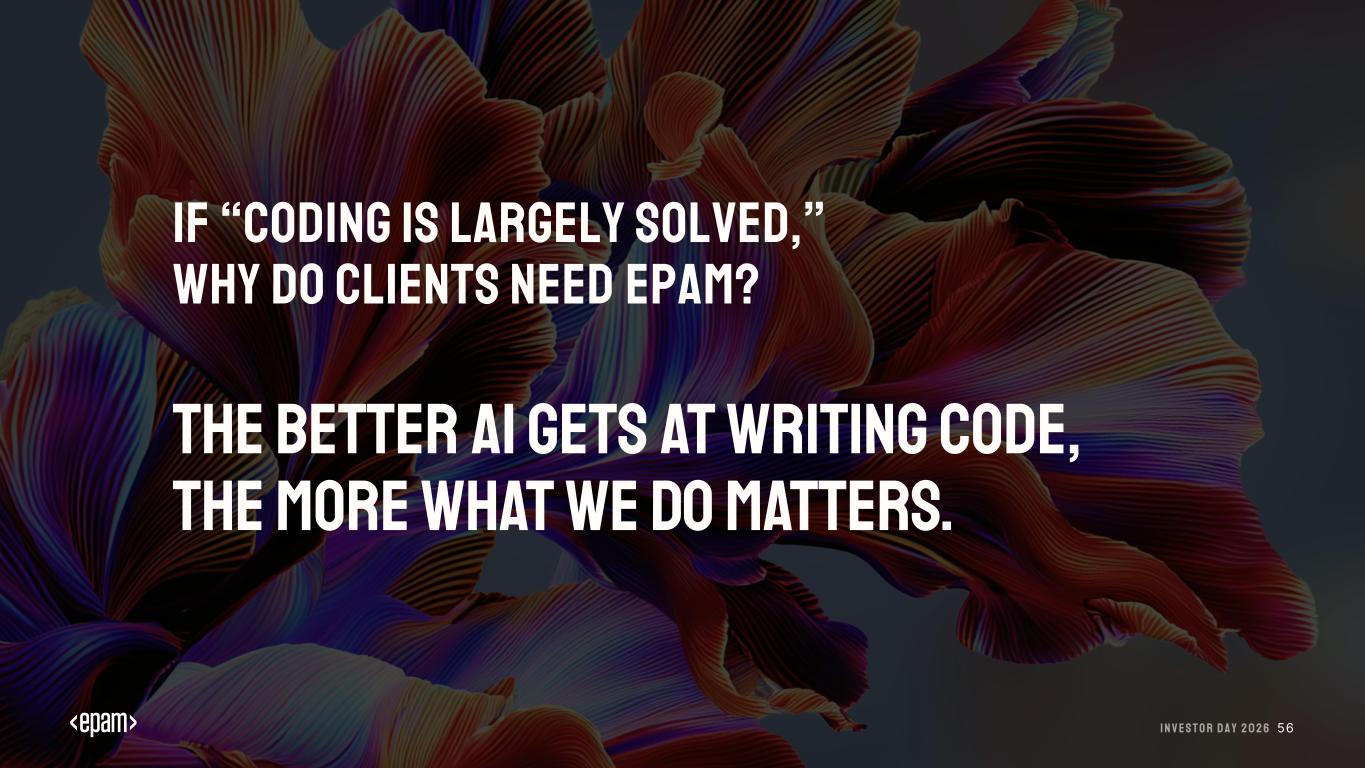 If “coding is largely SOLVED,” why do CLIENTS need epam? The better AI gets at writing code, the more WHAT WE DO MATTERS. 56